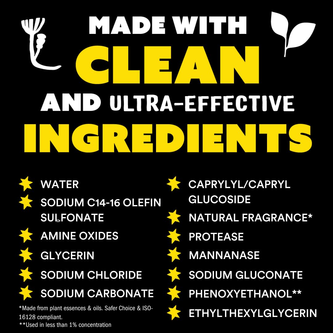 • Developed by a pediatric nurse & mom and made with simple, effective ingredients, Molly's Suds harnesses the power of plant-based surfactants and active enzymes to deeply penetrate fibers, removing soil, dirt, oil, and stains with ease.