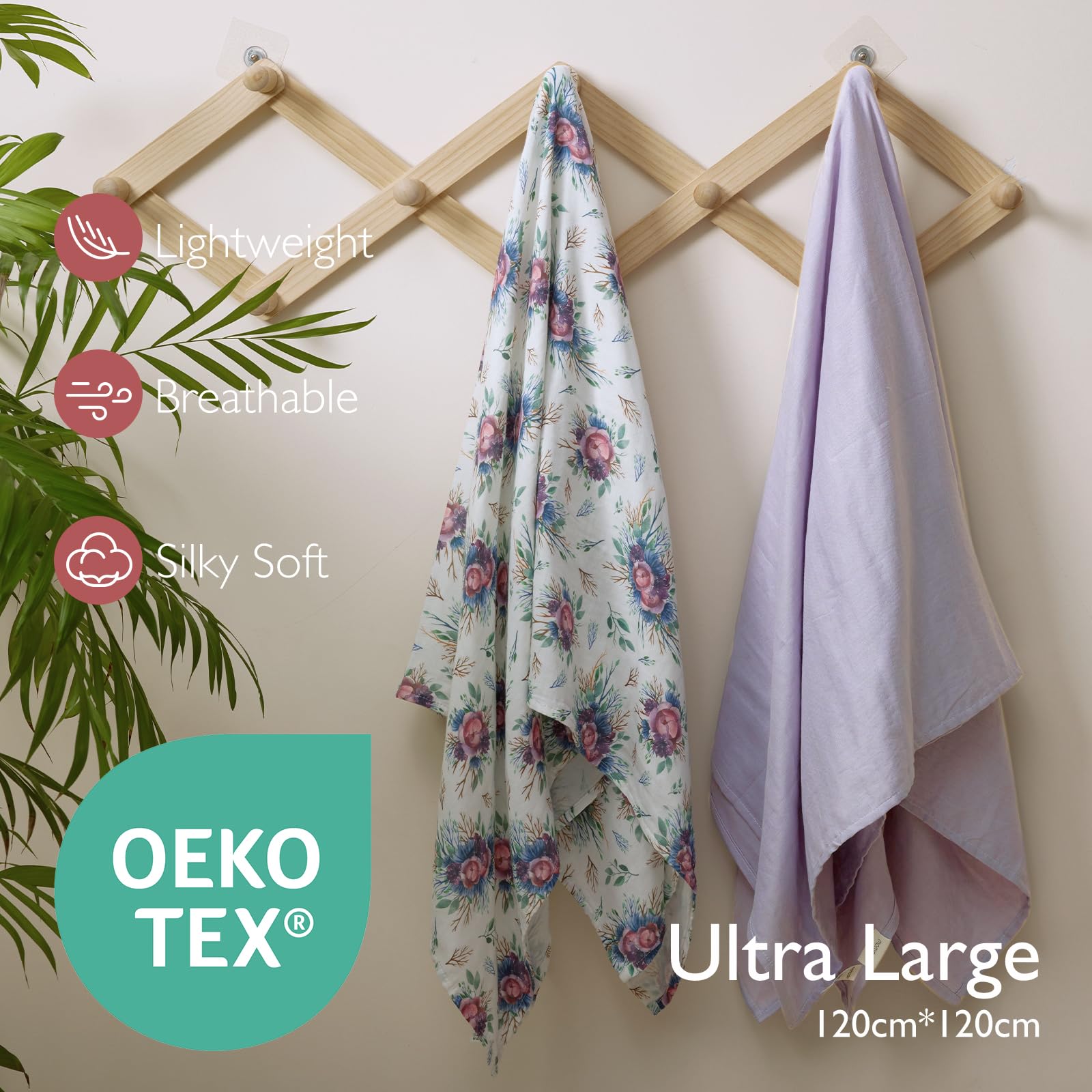 Momcozy Softness Upgrade Muslin Swaddle Blankets, Vivid Flower+Solid Purple Neutral Matching, 2 Pack Breathable 2-Layer Gauze Large 47'' x 47'' Swaddling Blanket Wraps for Newborn Baby Boys Girls