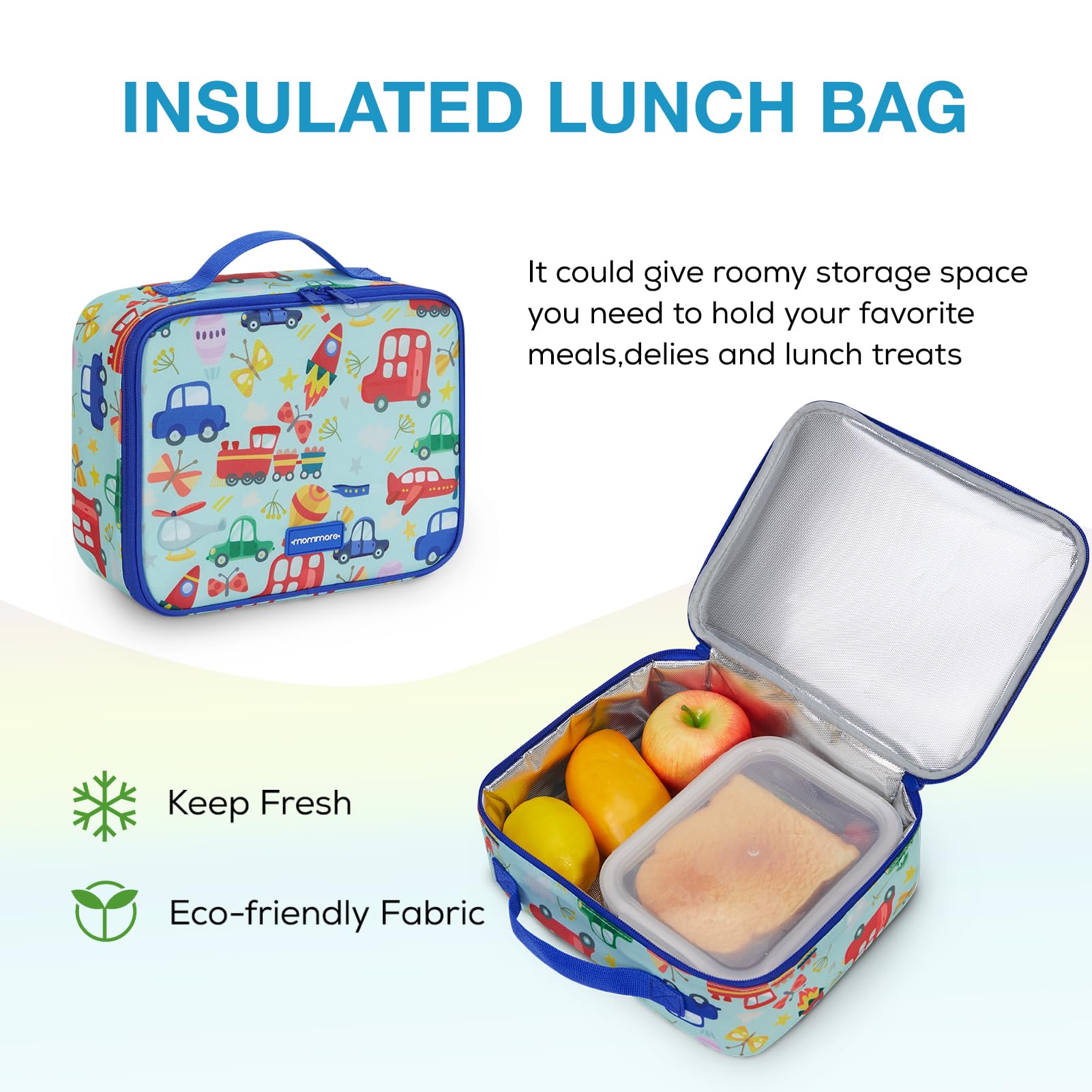 mommore Kids Backpack Set, Lightweight School Backpack for Kids Elementary Car Bookbag for Students with Chest Strap Water Resistant,3pcs blue
