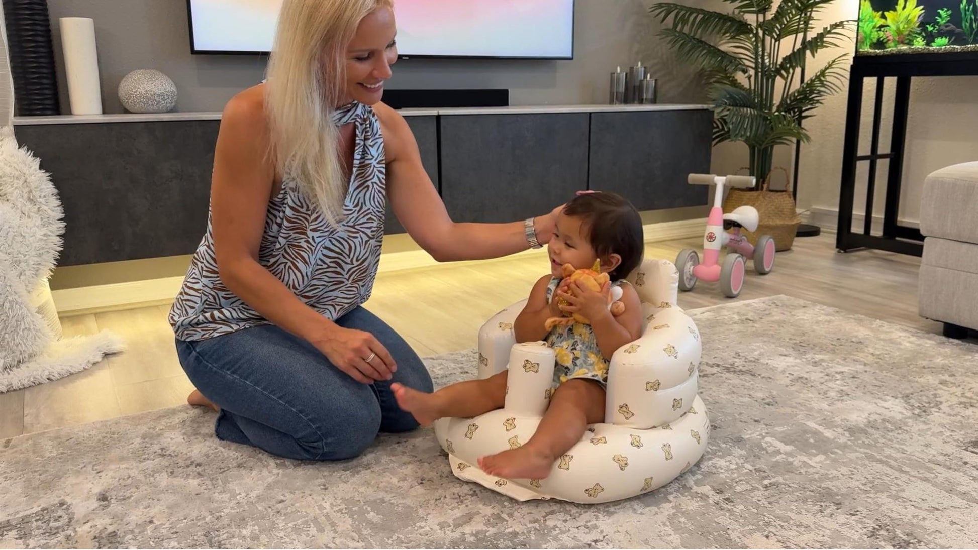 Momsnug Blow Up Seat for Baby, Inflatable Baby Chair 3 Months & Up, Chair for Babies Sitting Up with Built in Pump (Bear)
