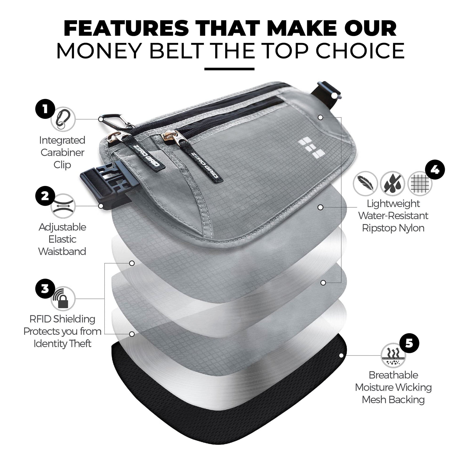 Money Belt for Secure Travel - RFID Blocking Slim Passport Holder - Hidden Waist Pouch for Cash, Credit Cards, Documents - Concealable Under Clothes, Water-Resistant Travel Belt for Men and Women