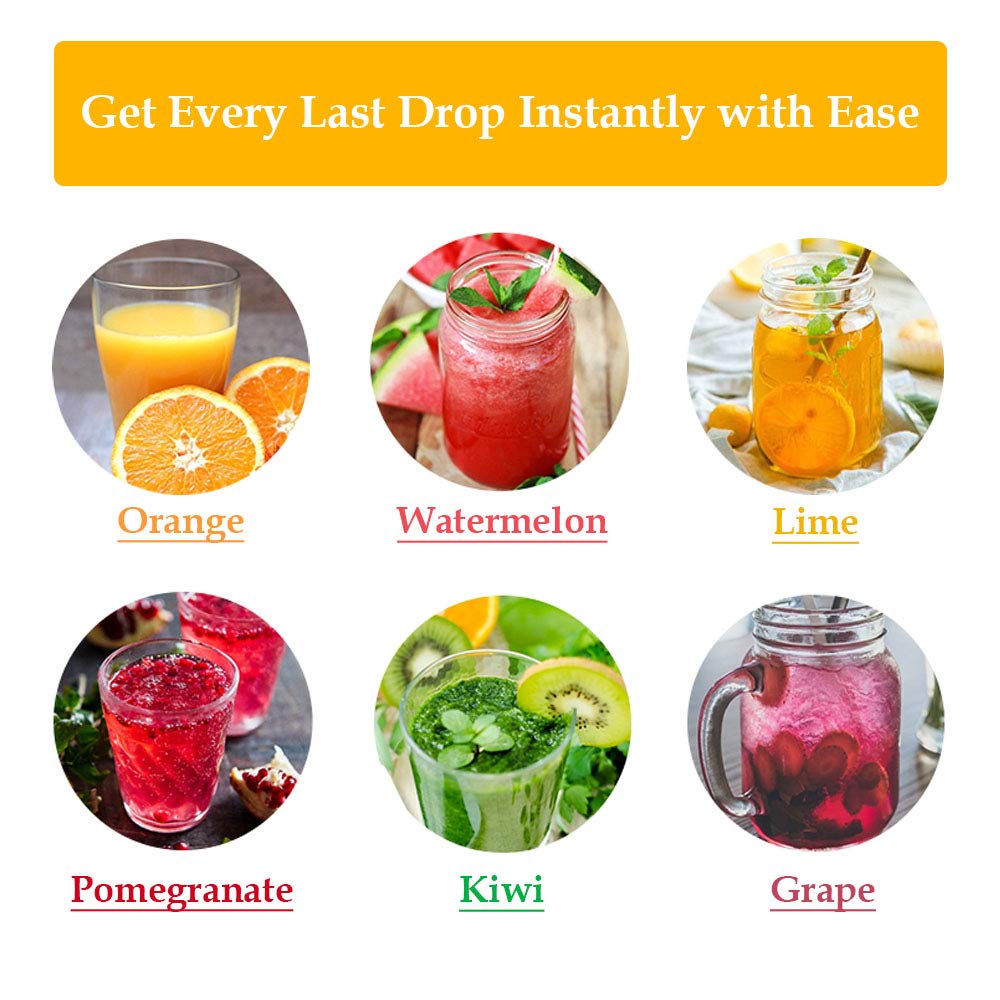 • 【Widely Used & Multi-Function】 With a big size bowl to hold and squeeze all kinds of fruits: lemon, orange, lime, citrus, easily juice the original flavor, enjoy high-quality nutrition life. And it is suitable for all you need: pair with meat, mixed with vegetables, bartending, direct drinking or cooking.