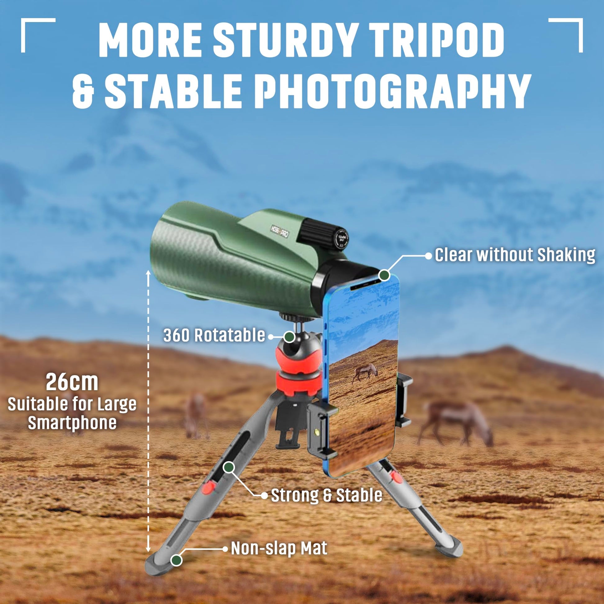 • Smartphone Ready: Transform this monocular telescope into a professional phone telescope with the included 1x smartphone adapter, allowing you to capture stunning photos of the night sky, wildlife, and landscapes in full HD.