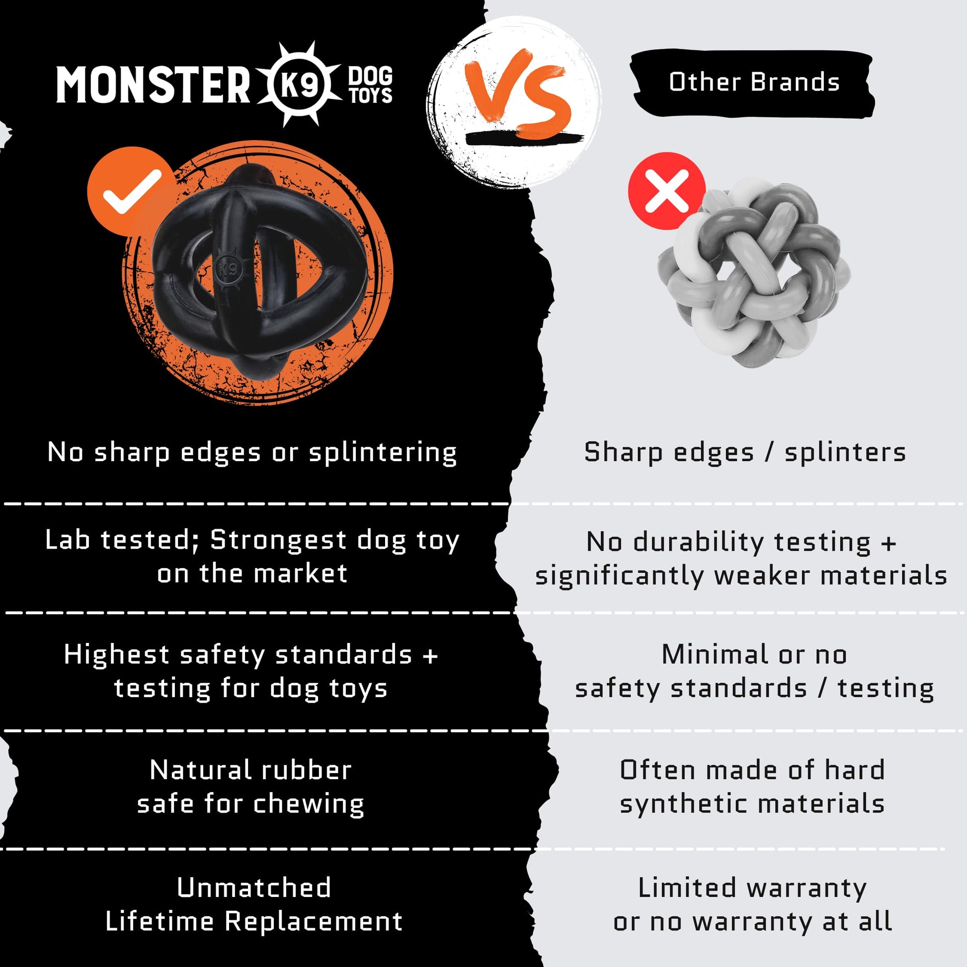 Monster K9 Indestructible Dog Ball – Lifetime Replacemnet - Durable Dog Toy for Aggressive Chewers - Safe, Non-Toxic Natural Rubber - Chew, Tug & Fetch - Tough, Heavy Duty - 5.5” (2X Tennis Ball Size)