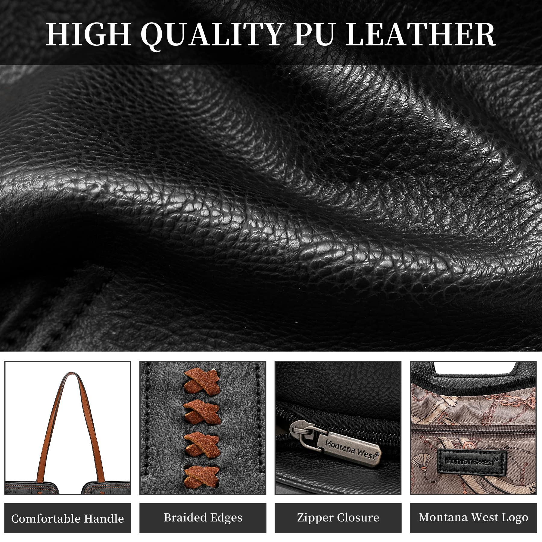 Montana West Black Tote Bag for Women Top Handle Satchel Purse Oversized Shoulder Handbag Hobo Bags Black Gift MWC-118BK