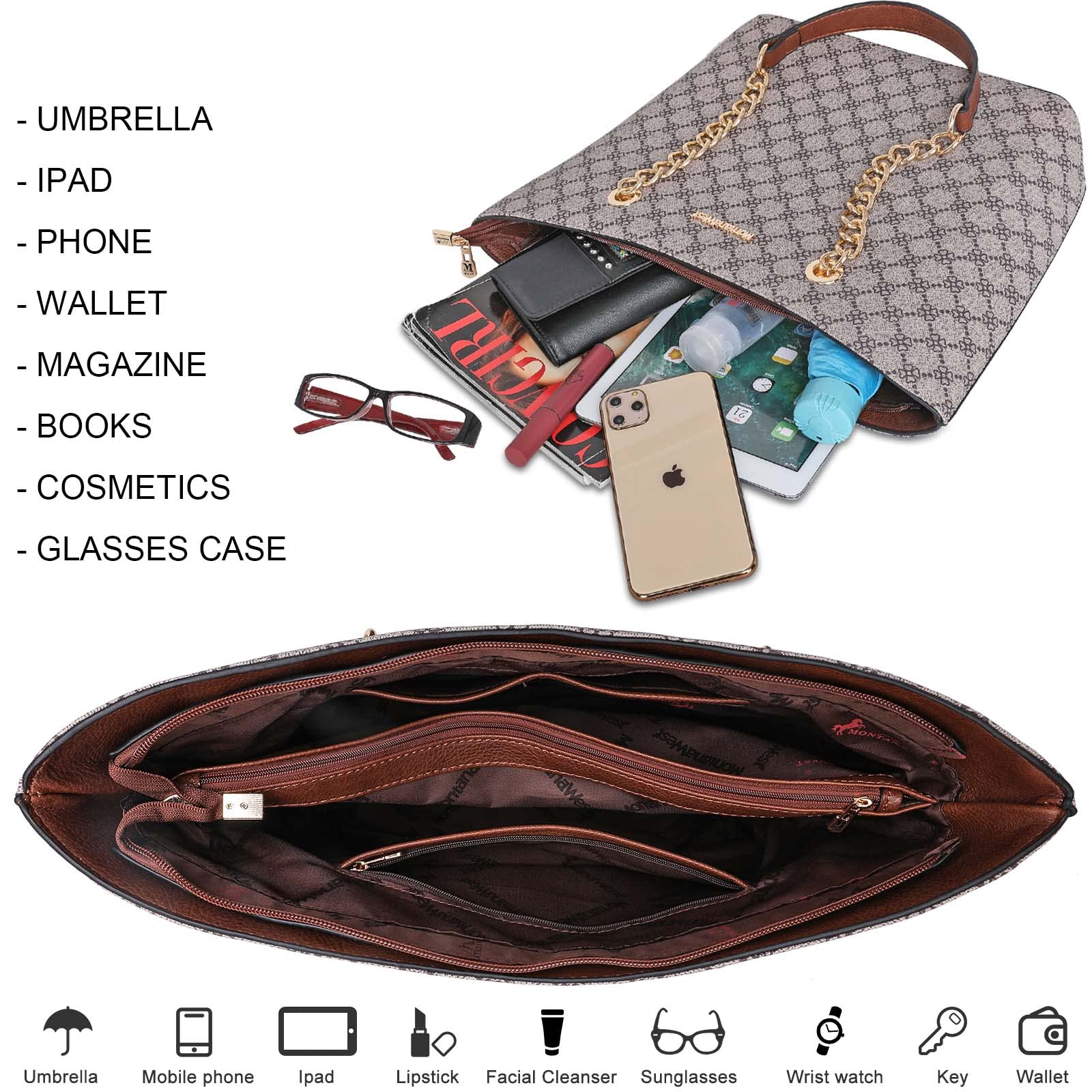 • Large Capacity: Dimension: 12 (W) x 11 (H) x 4.8 (D) inch, handle drop: 10.5 inches, Weight: 1.65 lb, this women purses can keep your iPad, magazine, keys, notebook, umbrella, wallet, sunglass, phone, lipstick well organized