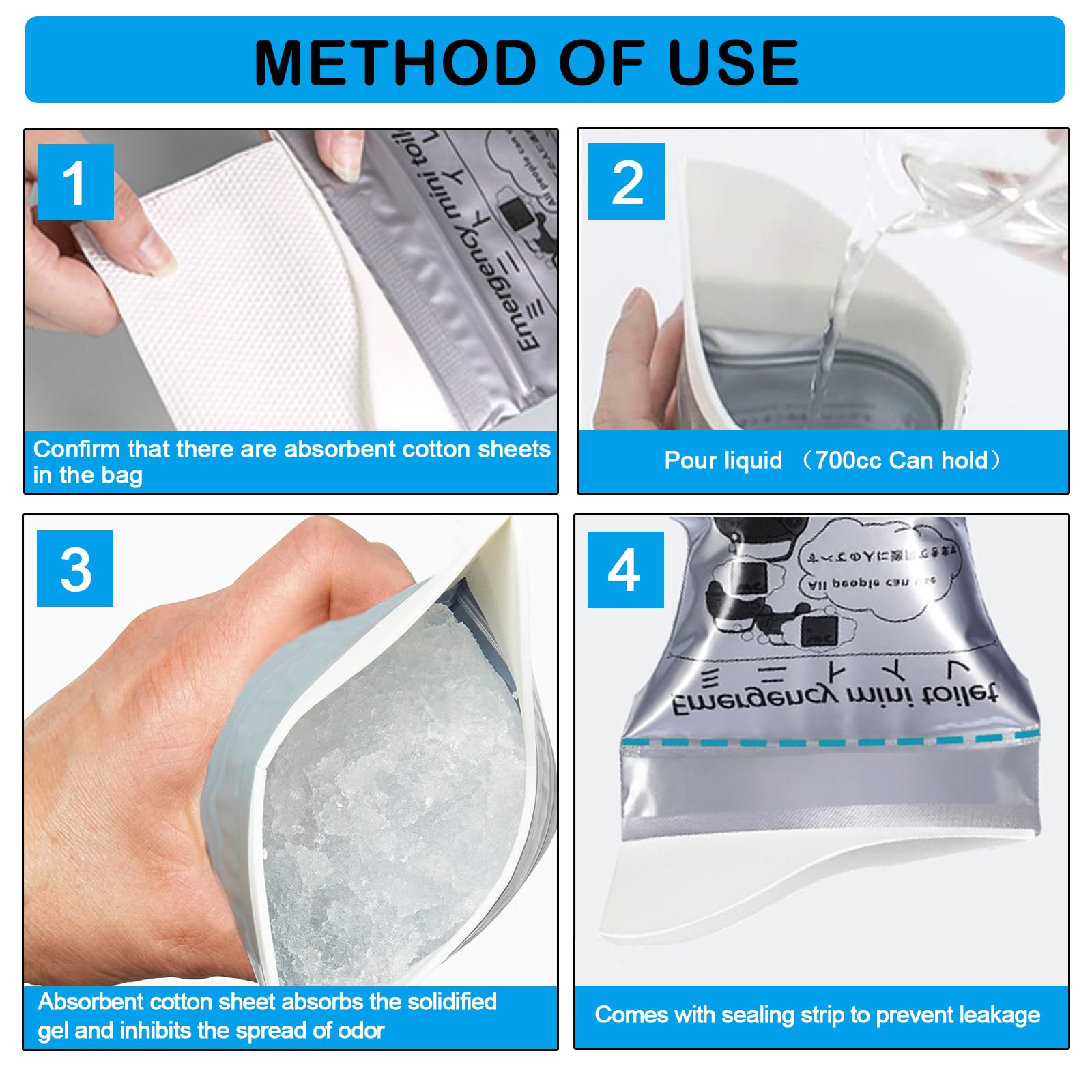 • 【Easy to use】Just open the urinal bag to use. There is a white absorbent cotton cloth in the bag, (no need to open or empty during use), which can turn it into an odorless anti-spill gel within 40 seconds.