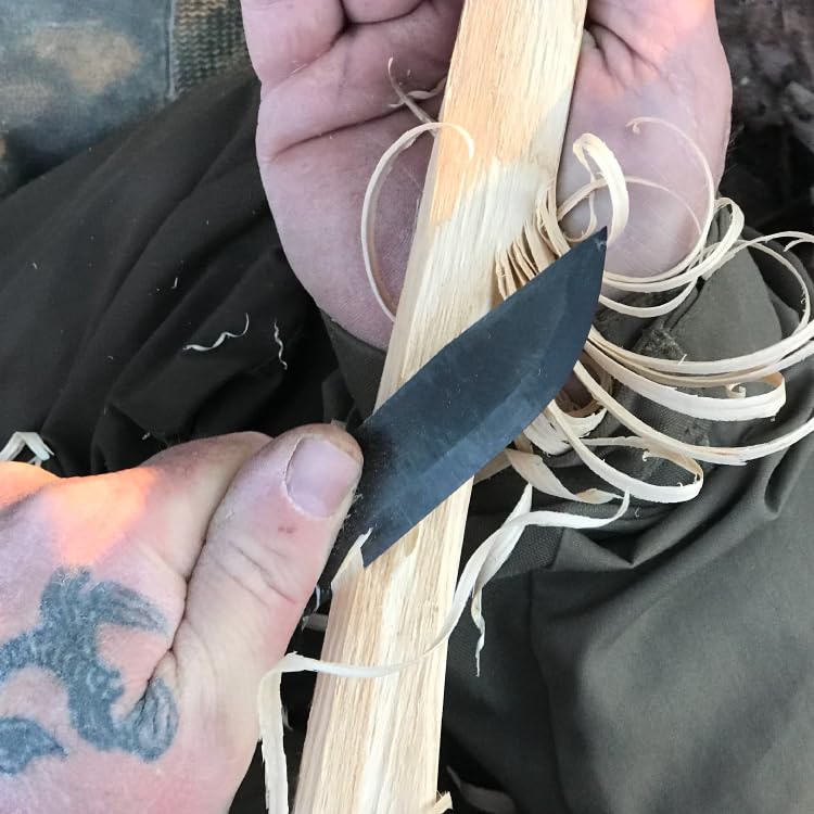 • PREMIUM BLADE: 0.13 inch thick carbon steel blade with Scandi grind edge profile; 90º angle knife blade is compatible with included fire starter