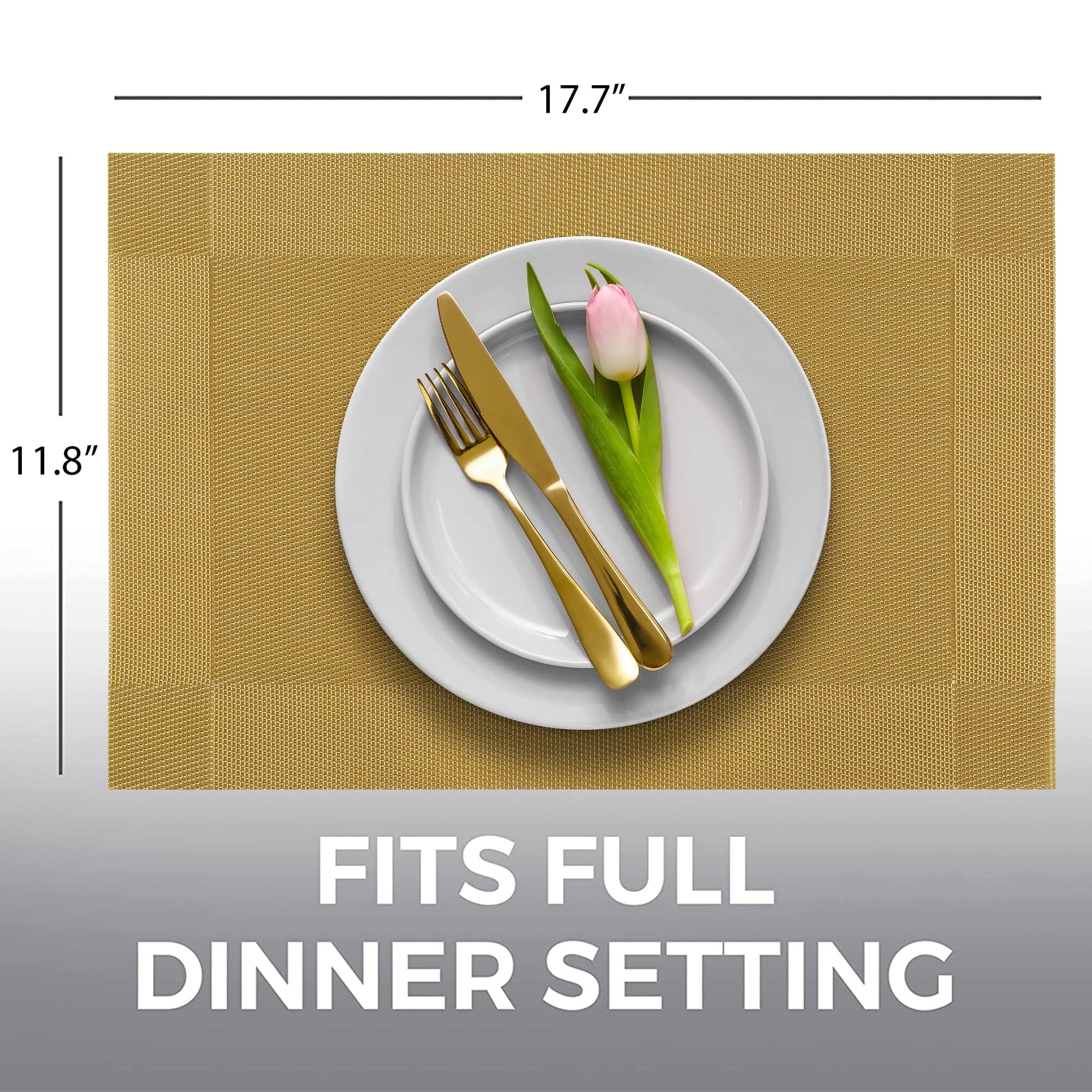 More Décor Dining Table Placemats, Washable Heat-Resistant PVC Vinyl Table Mats for Dining Room and Kitchen, Anti-Slip - Set of 4 -Gold