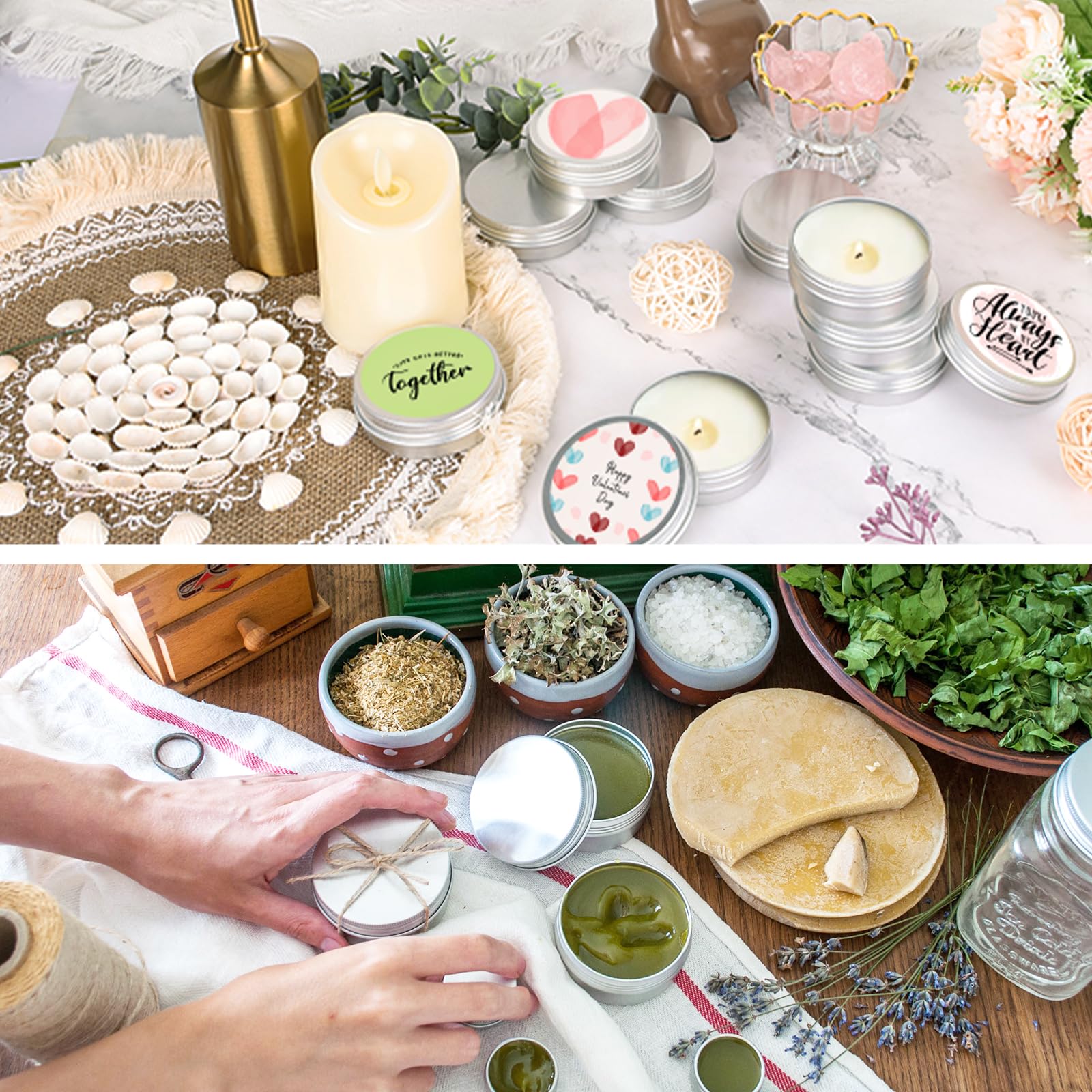 Moretoes 48 Pack 2 Oz Metal Round Tins Aluminum Tin Cans Containers with Screw Lid for Salve, Spices or Candies