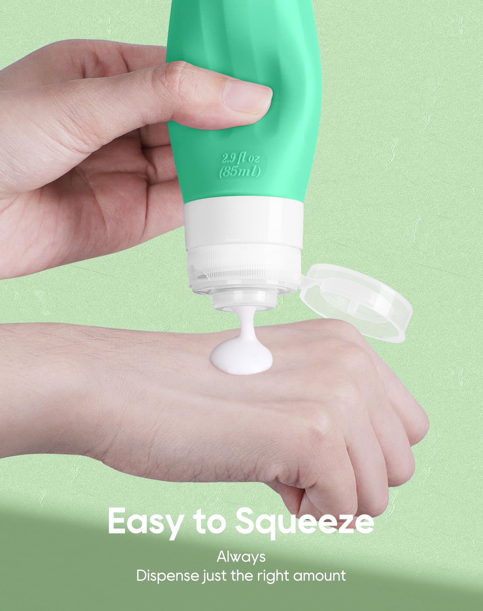 • 【SILICONE & SQUEEZABLE】Made of food grade Silicone which is BPA free and non-toxic, feel soft, flexible and comfortable instead of hard like traditional plastic travel bottles. The silicone is thick and durable but can be squeezed easily