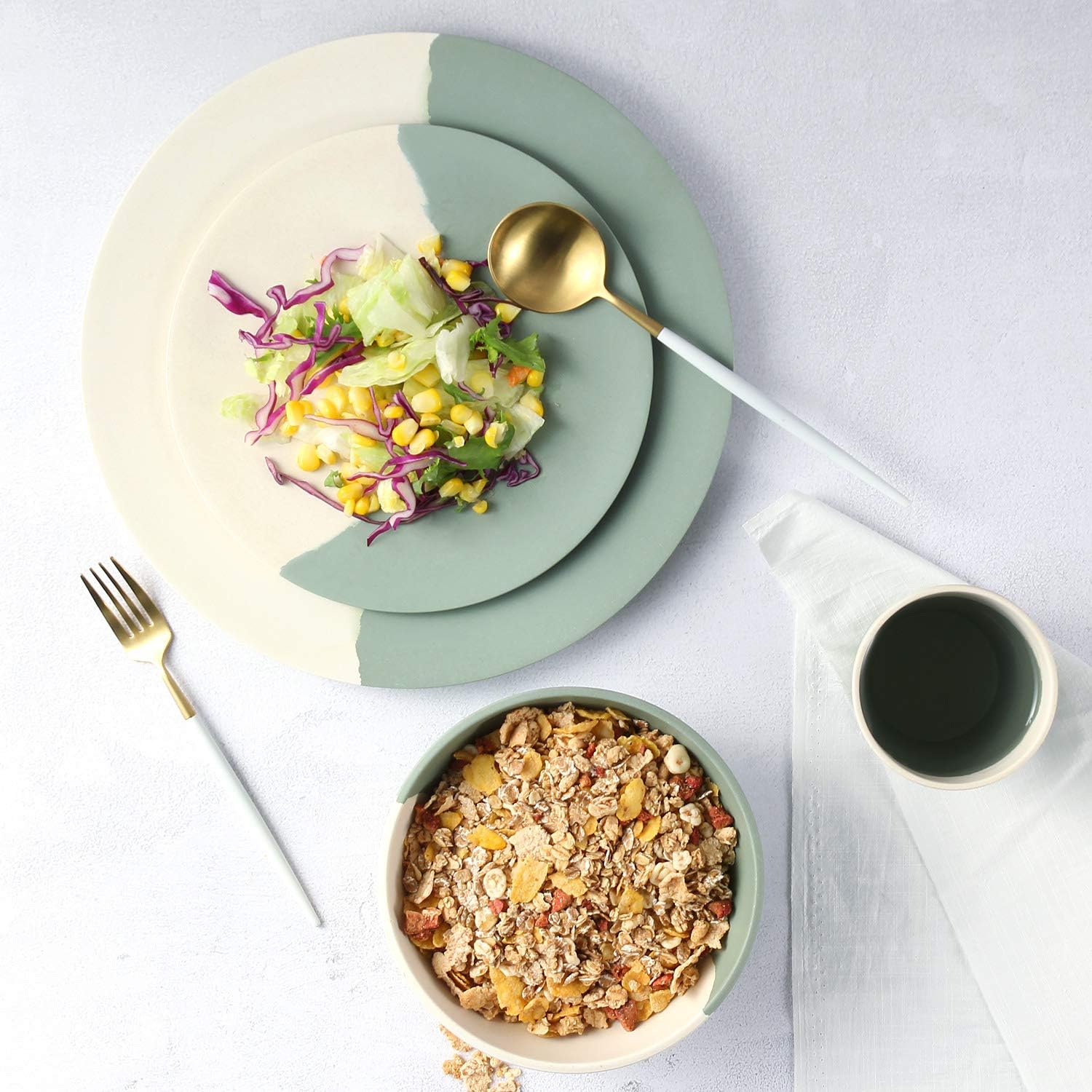 • 【Eco-Friendly Gift】 This dinnerware set designed with bright color is a great replacement for single-use products such as plastic cutlery and dishes. It may not be a luxurious gift, but definitely a meaningful one! Awesome gift idea for Christmas, housewarming, birthday etc.