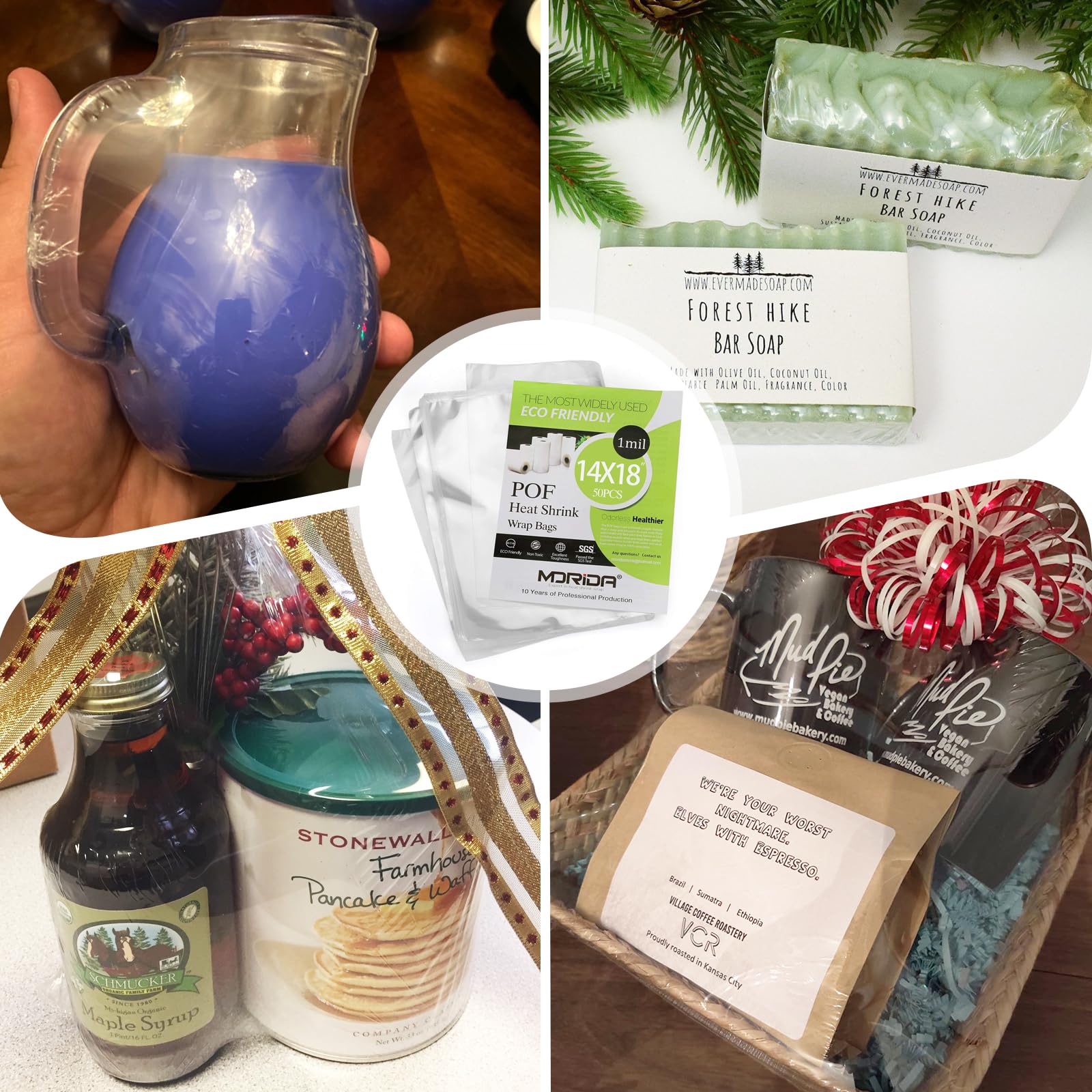 MORIDA 50 pcs 14X18 inch POF Heat Shrink Wrap Bags 100 Gauge, Softer, Clear Film for Gifts, Basket, Soaps Bottles, DIY Handmade Crafts, Odorless, Non-Toxic, Food Safety Quality