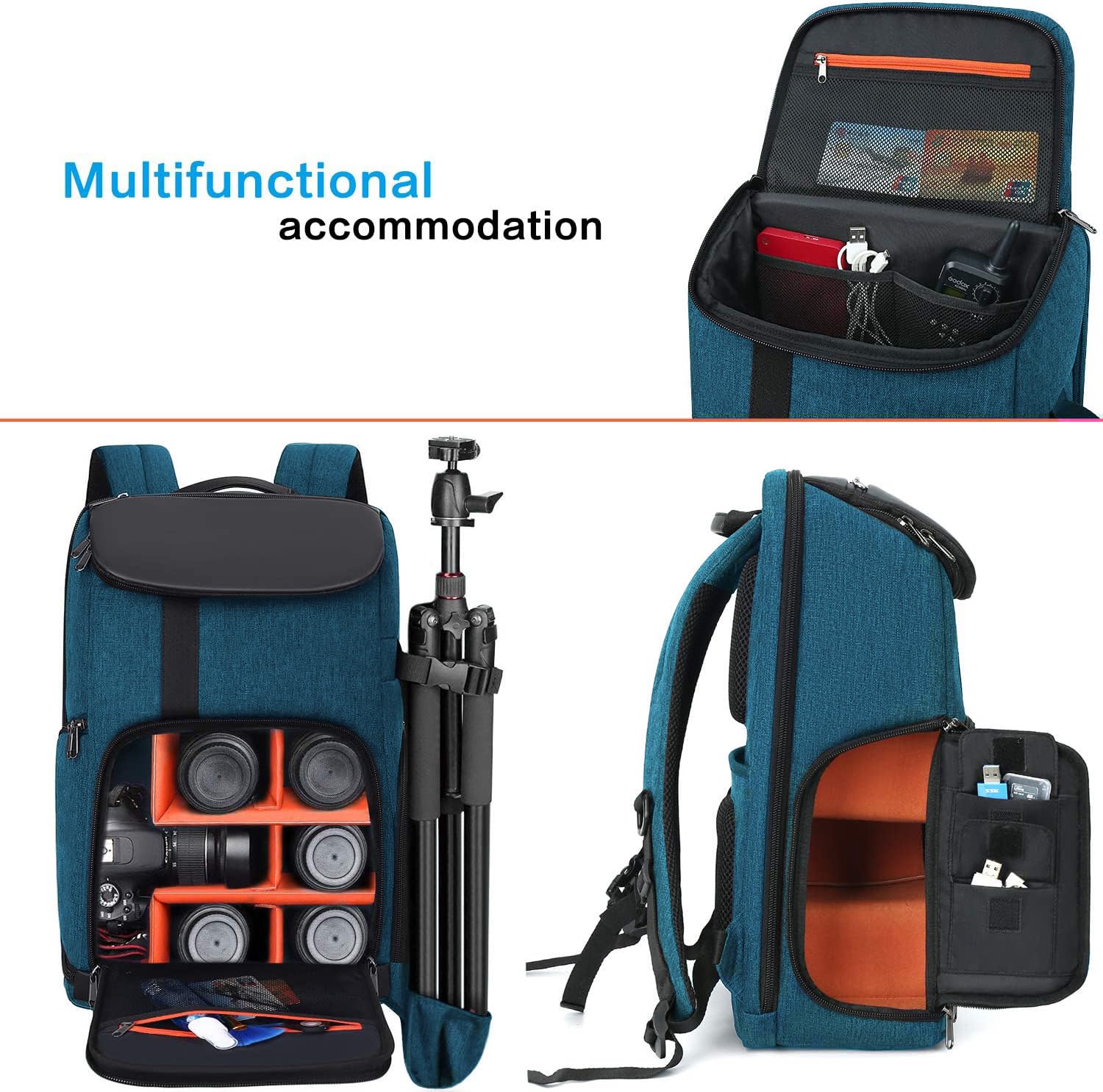 • This multifunctional camera backpack bag is professionally designed for DSLR / SLR / Mirrorless cameras of different brands with laptop compartment. Compatible with Nikon D5600, D5300, D3500, D3400, D3300, D3200; compatible with Canon EOS Rebel T6, T6i, SL2 and other standard-size DSLRs. Suitable for men and women - camera enthusiasts.