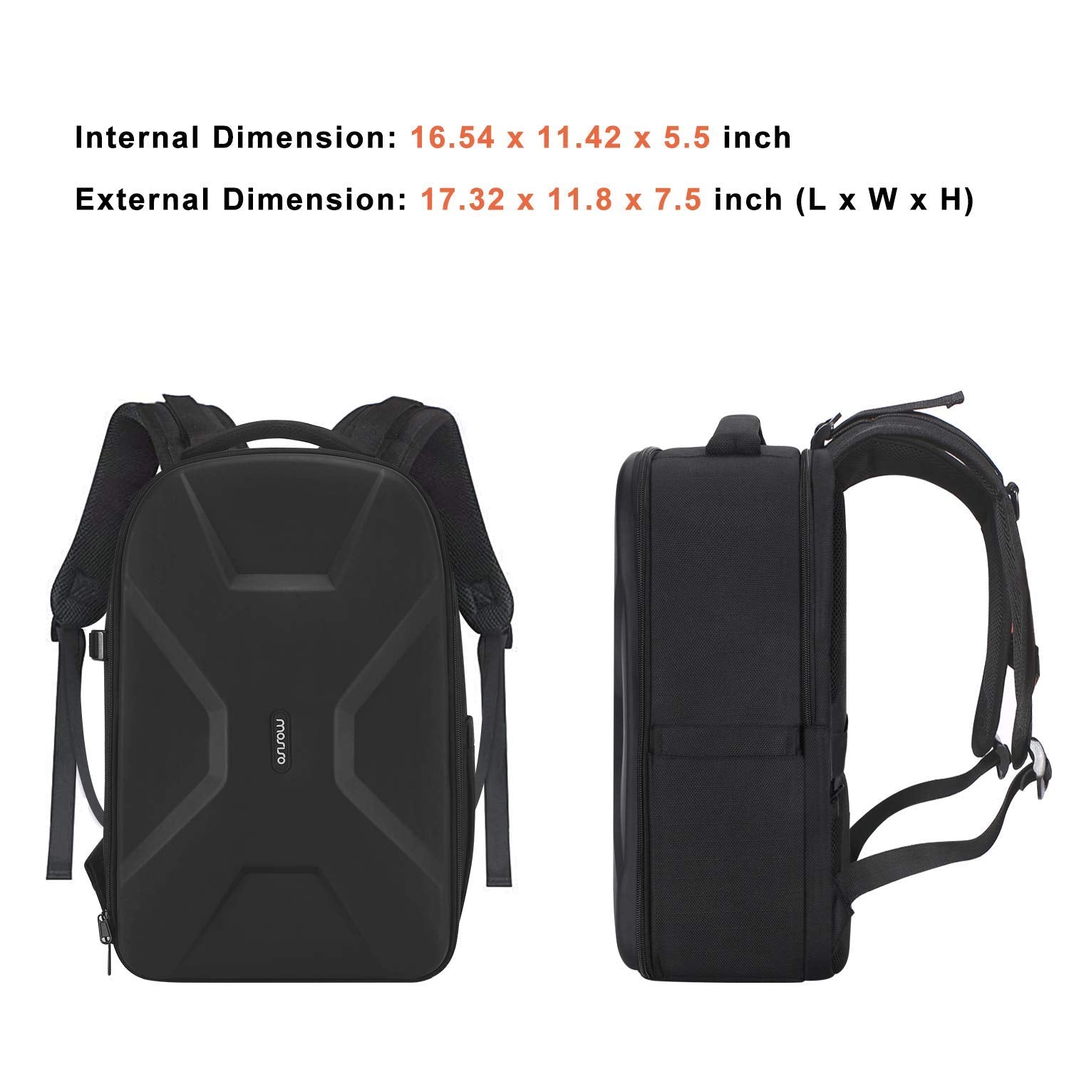 • Dimension:17.32 x 11.8 x 7.5 inch. 2 compartments included. Padded removable modular inserts in the upper one (16.54 x 11.42 x 5.5 inch) is customized dividers for different cameras, flashes, lens and drones. You can organize the inner padded to adjust the inner storage space according to your needs. Another one (16.93 x 10.63 x 1.58 inch) is laptop compartment to storage up to 16 inch.