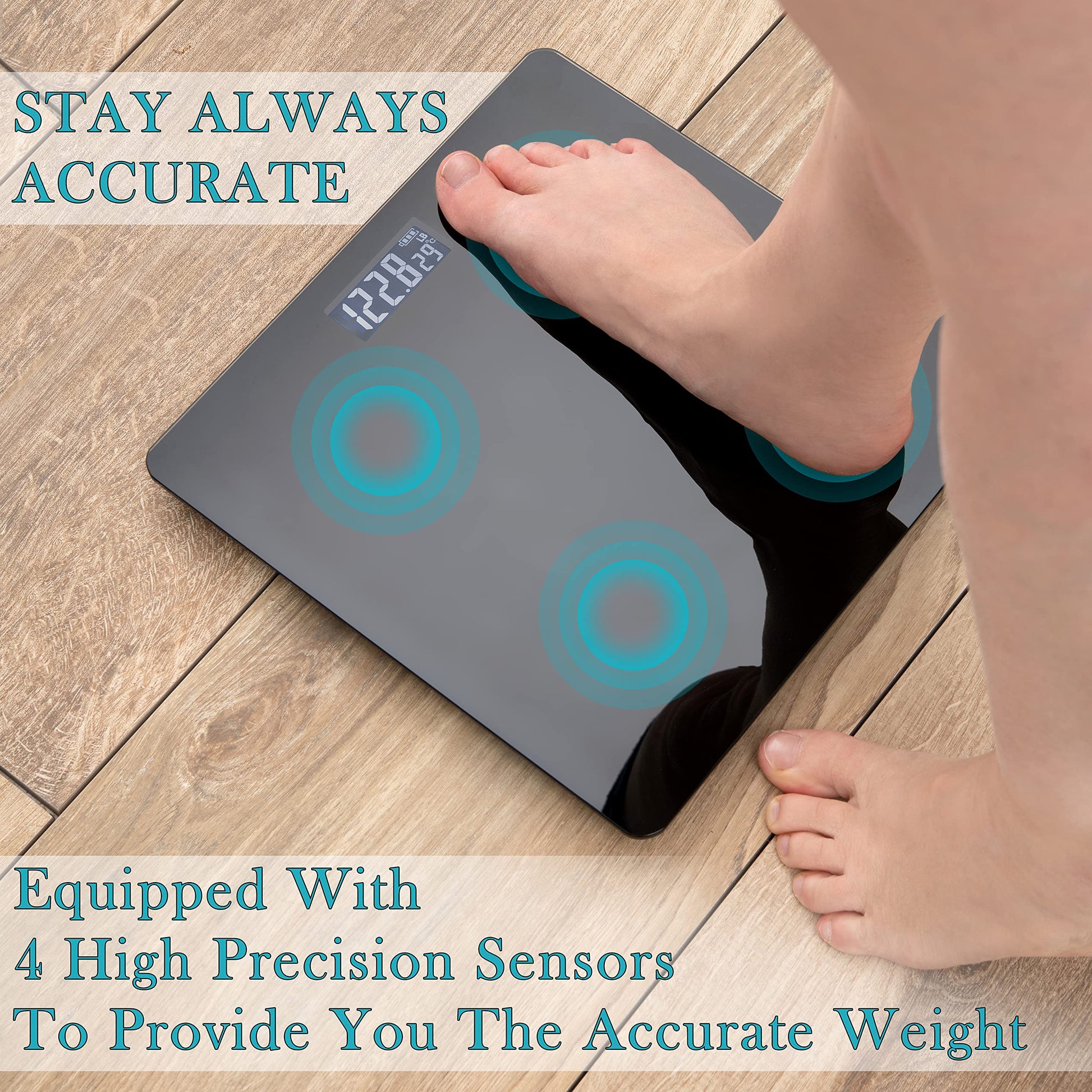 • High Accuracy Digital Scale: The digital scale bathroom has four highly precise sensors that provide accurate and stable readings. Measure range from 11-400lb, 5-180kg. Graduation increments of 0.2lb /0.1kg, runs on 2 aaa batteries (not included)