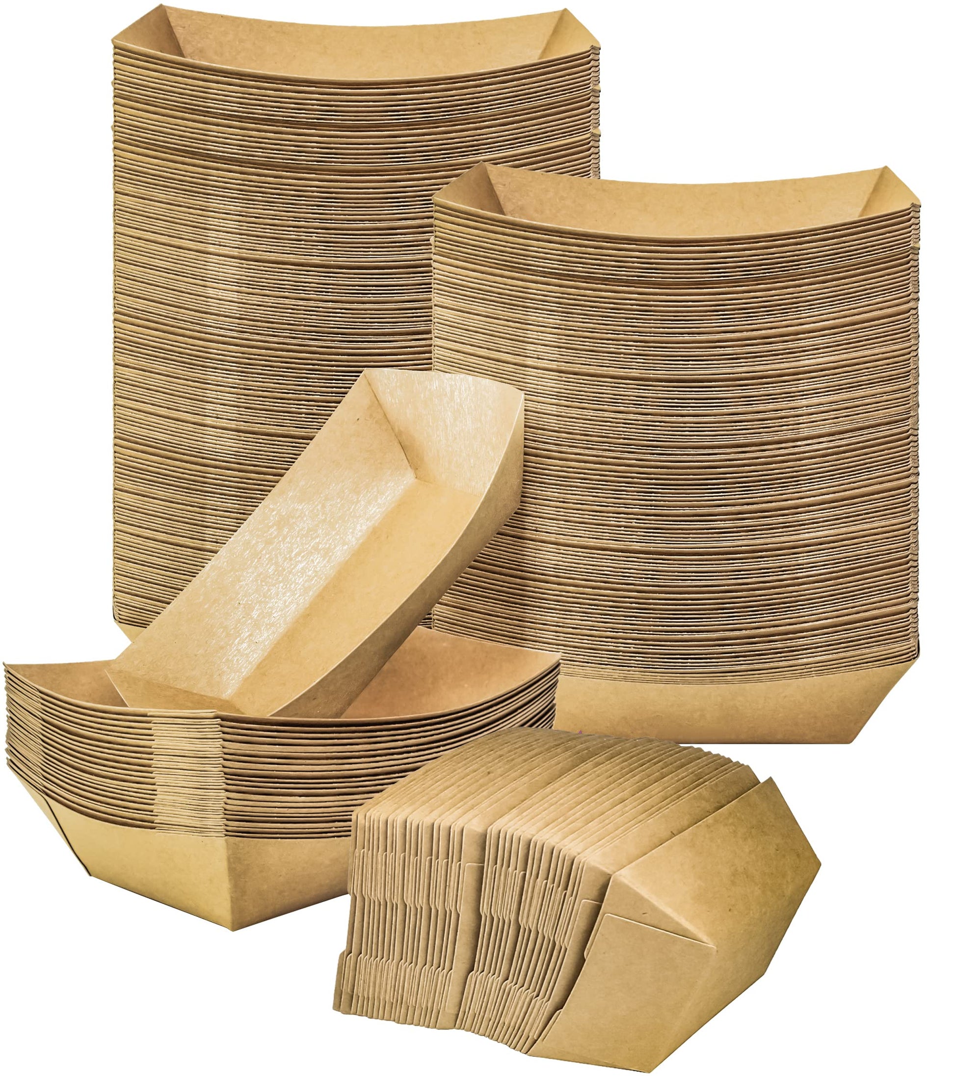 MotBach 100 Pack 2lb Kraft Paper Food Trays, Heavy-Duty Paper Food Boat Disposable Serving Basket Tray for French Fries Nachos Snack Hot Dog Taco BBQ Popcorn Party Picnic Wedding Party (Brown)
