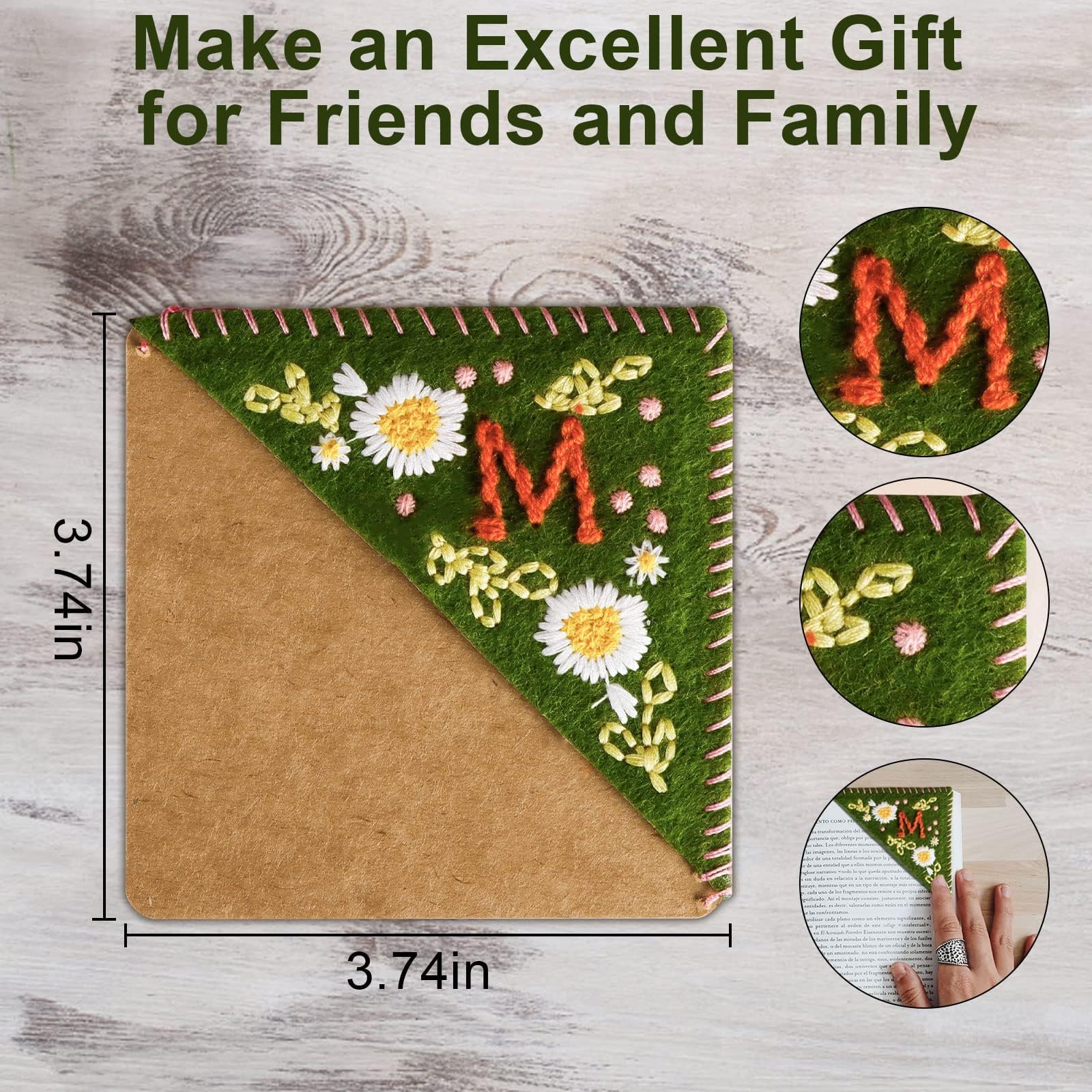 MOTEERLLU Personalized Hand Embroidered Corner Bookmark,Felt Triangle Page Stitched Handmade Bookmark,Unique Cute Flower Letter Embroidery Bookmarks Accessories for Book Lovers