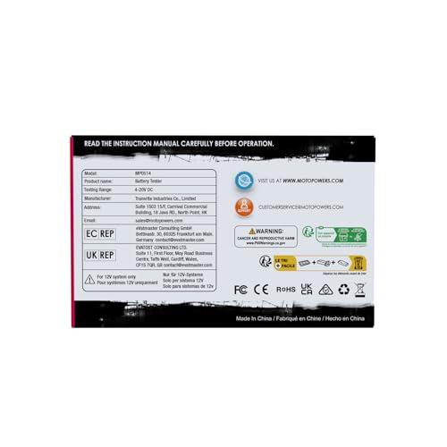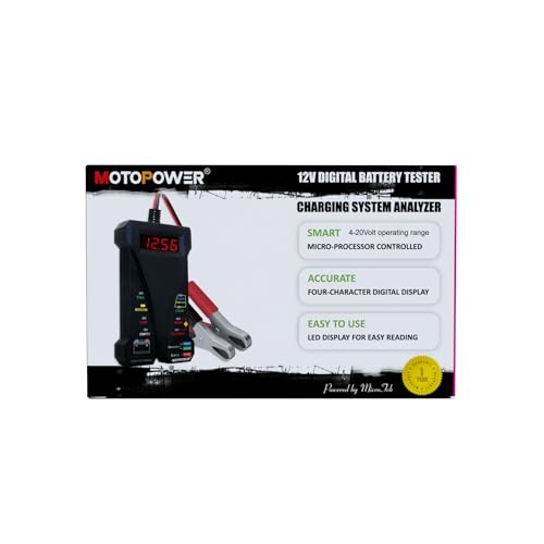 MOTOPOWER MP0514A 12V Digital Car Battery Tester Voltmeter and Charging System Analyzer with LCD Display and LED Indication - Black Rubber Paint