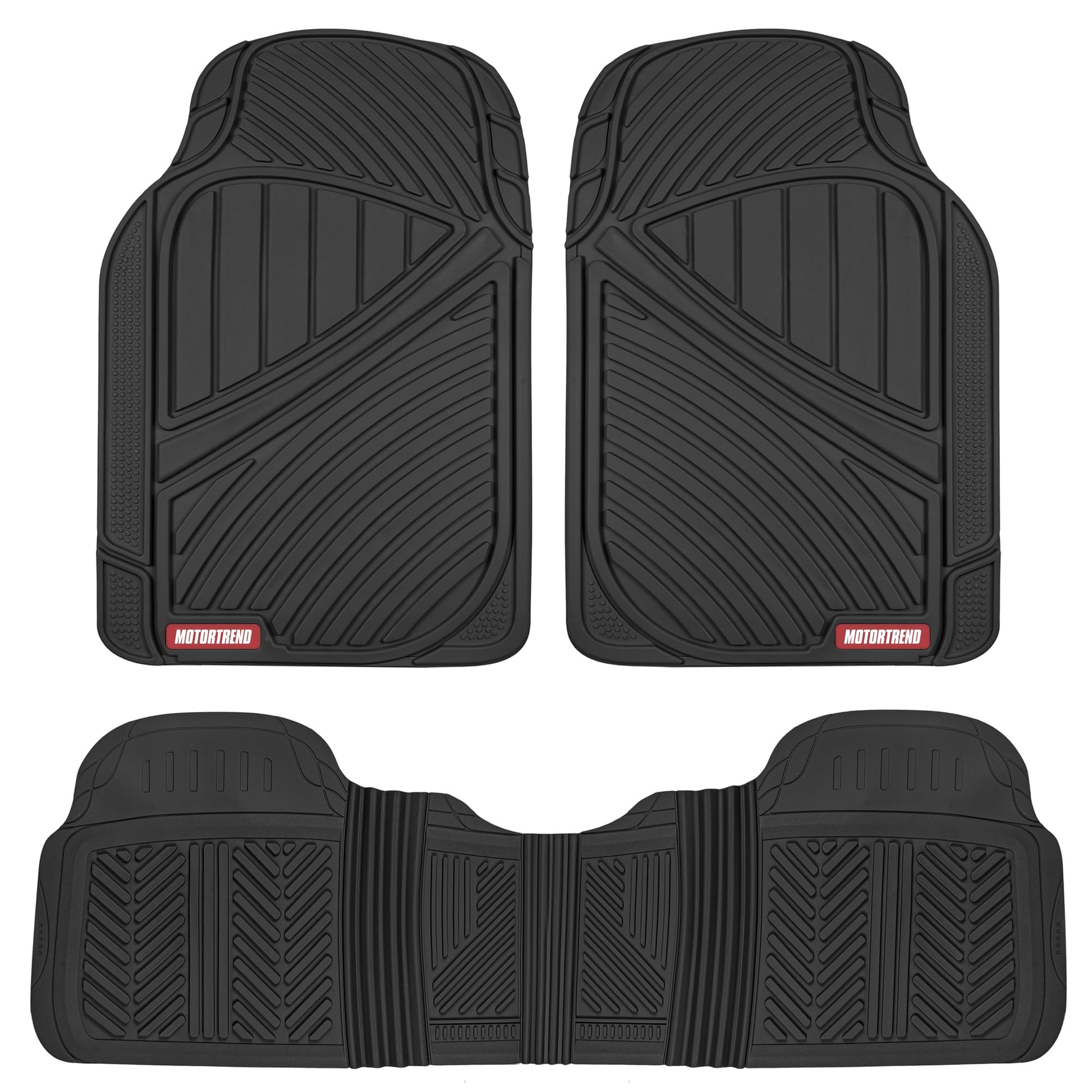 Motor Trend FlexTough Performance All Weather Rubber Car Floor Mats - 3 Piece Floor Mats Automotive Liners for Cars Truck SUV, Heavy-Duty Waterproof (Black)