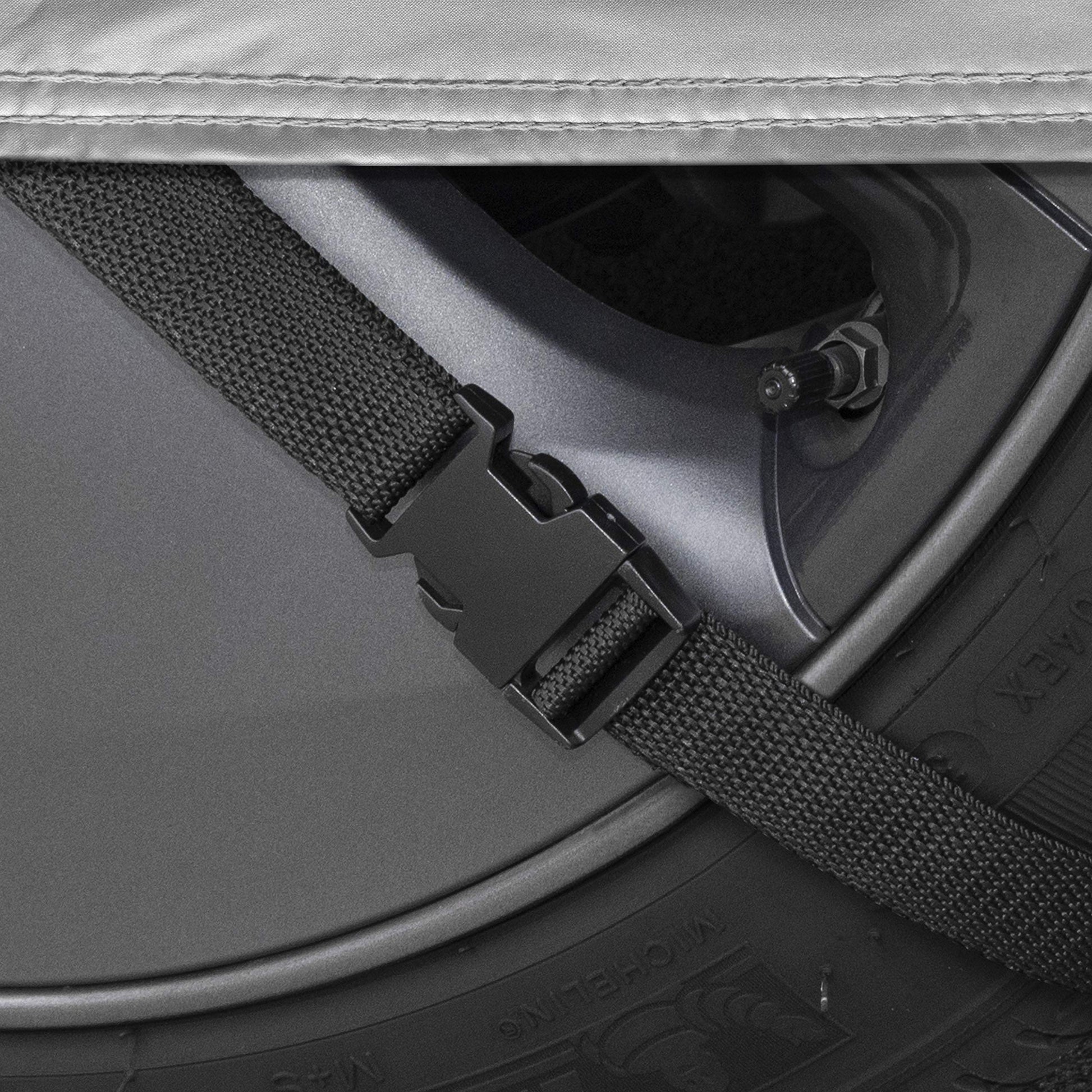 HEAVY-DUTY PROTECTION - This car cover shields your vehicle from harsh weather. Reinforced seams and sturdy construction ensure lasting use, while secure straps hold the cover in place during strong winds, offering reliable, all-weather protection.