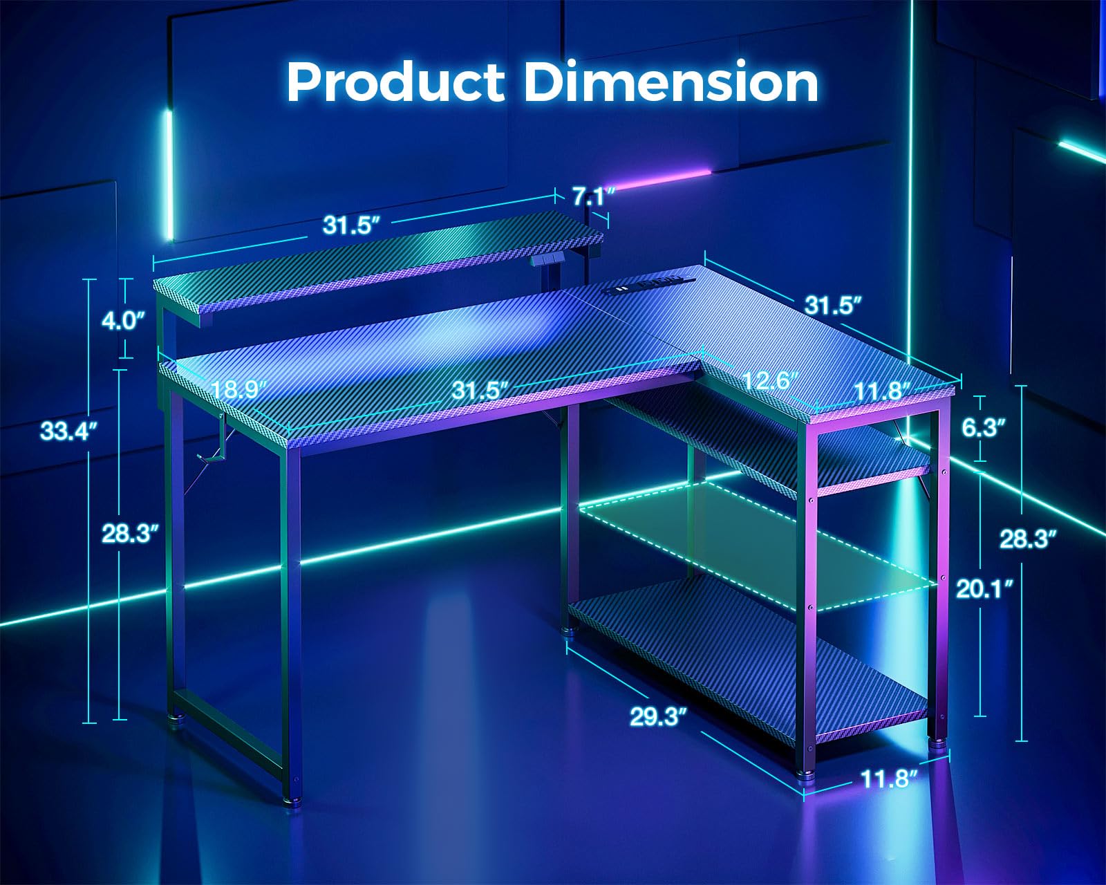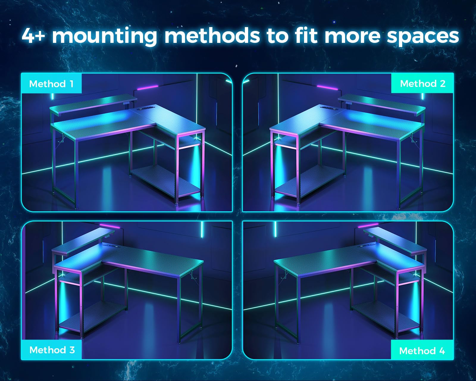 • Sturdy Construction & Multiple Mounting Options: This computer desk has good stability and a maximum load of 110 lbs for its main table board. The L-shaped design fits perfectly into the corners of your room and saves you space. You can install the storage shelf and monitor stand on your left or right-hand side according to your preference.