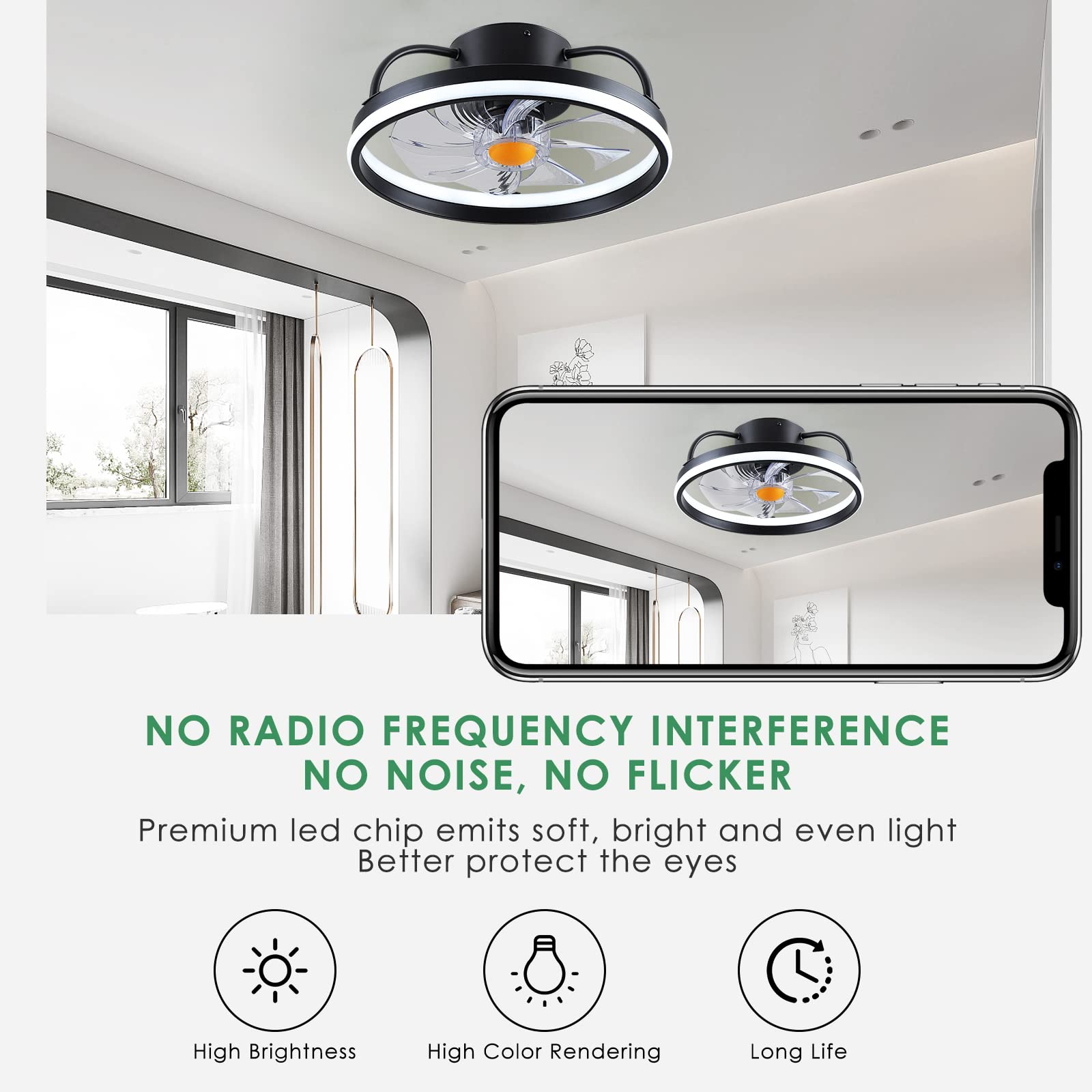 Mpayel Flush Mount Ceiling Fans with Lights and Remote Control,Modern Enclosed Bladeless,15'' Low Profile Ceiling Fan with Stepless Dimming Lighting Fixture for Bedroom Kitchen(Black)……