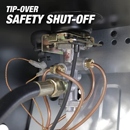 Details: Reflective radiant heat with the warmth of the sun. That is the Mr. Heater Portable Cabinet Heater in a nutshell. This Radiant 18,000 BTU Portable Propane Heater requires no electricity and is whisper quiet. With factory installed features like a tip-over safety switch and a thermoelectric safety valve with three heat settings of 6K, 12K, 18K BTUs, the only thing you need to make this heater the most useful tool you own is a 20lb propane tank. Just hook the tank up to the hose and regulator, stow the tank in the cabinet behind the burner, then enjoy the quiet warmth of the Mr. Heater Cabinet Heater.