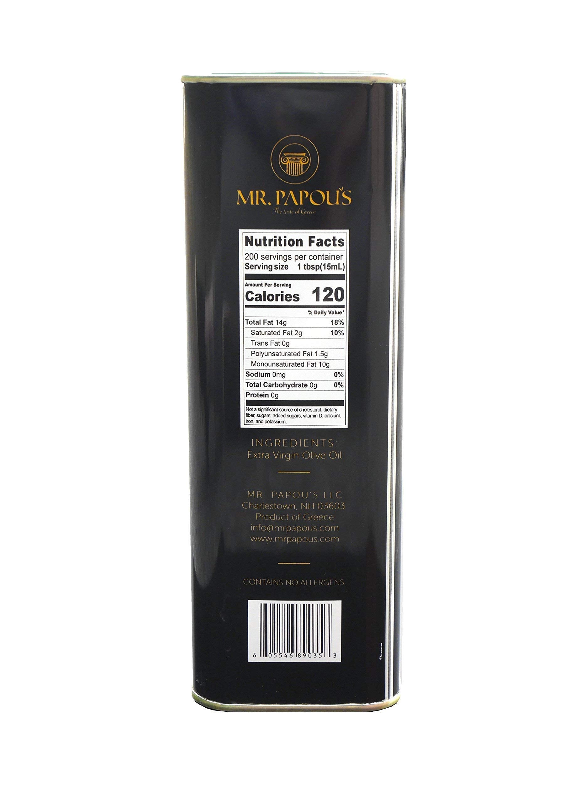 Mr. Papou's | Extra Virgin Olive Oil | First Cold Pressed | Family Owned | Harvested in Greece | 3 Liter - 101.4 fl oz (3 Liter)