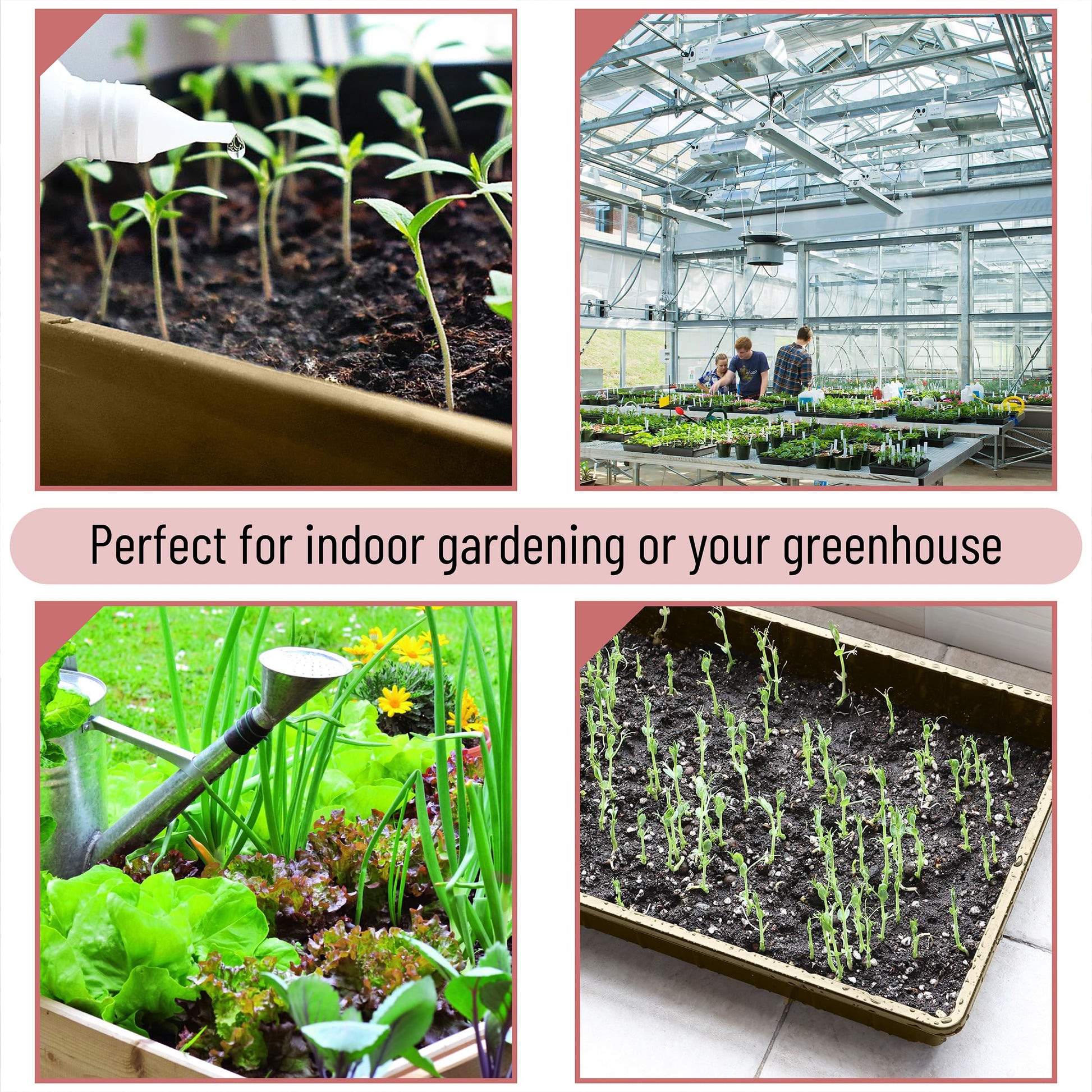 • Our seed trays effectively contain soil, fertilizer, and water, simplifying plant management. With a lightweight construction, our trays are easy to handle and maintain. Their dimensions measure 17 x 10 x 2.4 inches, providing ample space for your gardening needs.