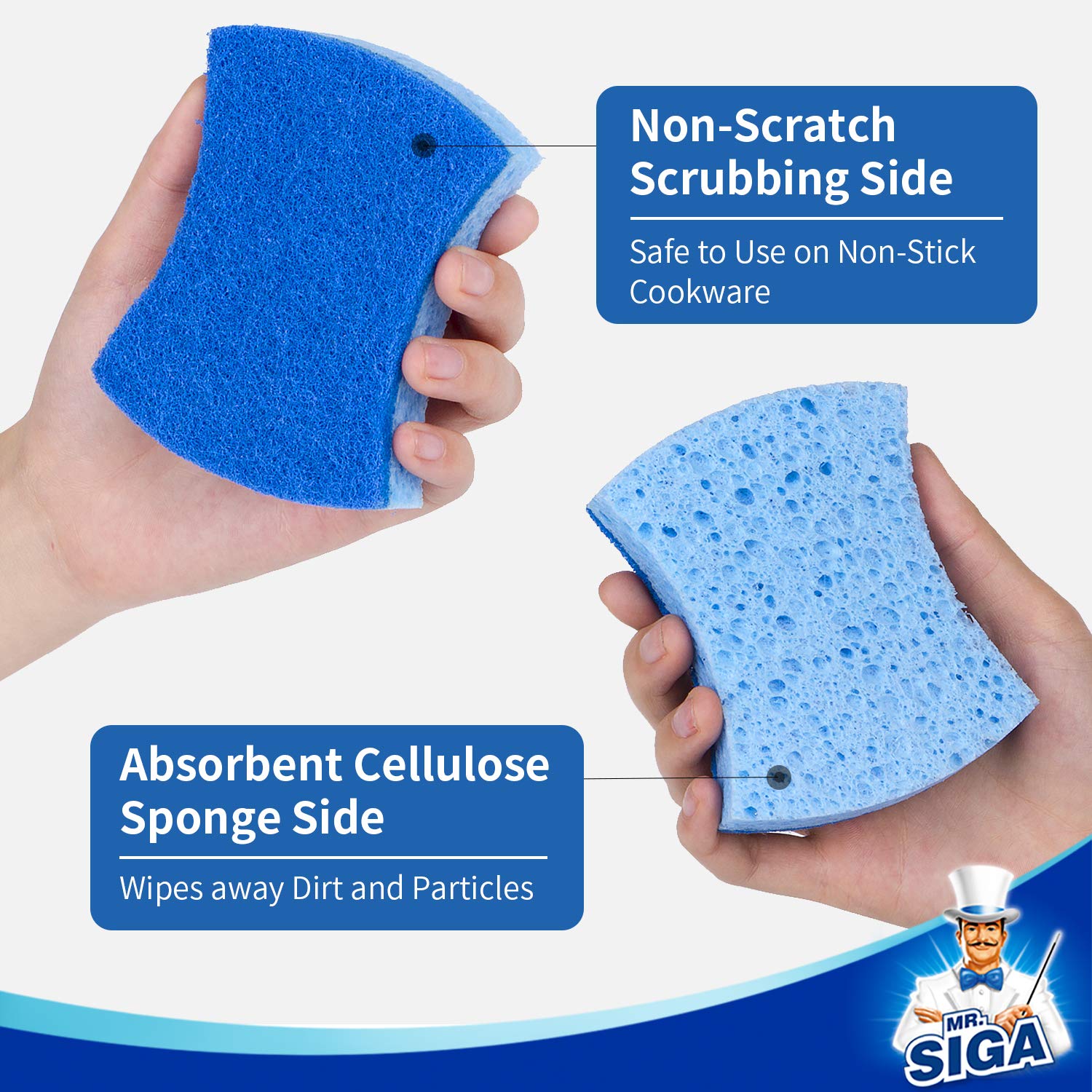 MR.SIGA Non-Scratch Cellulose Scrub Sponge, Dual-Sided Dishwashing Sponge for Kitchen, 12 Pack