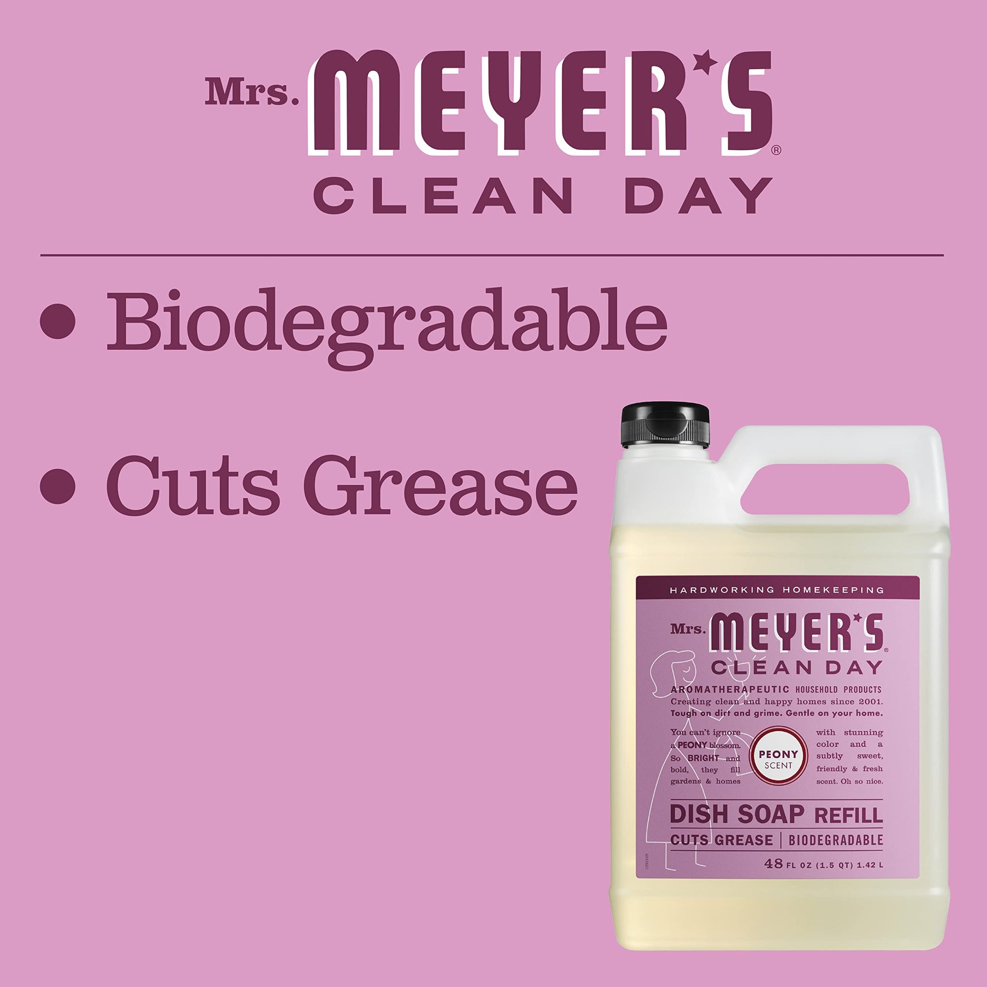 MRS. MEYER'S CLEAN DAY Liquid Dish Soap Refill, Biodegradable Formula, Peony, 48 fl. oz