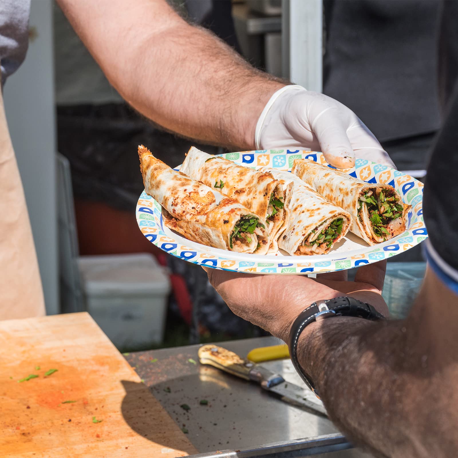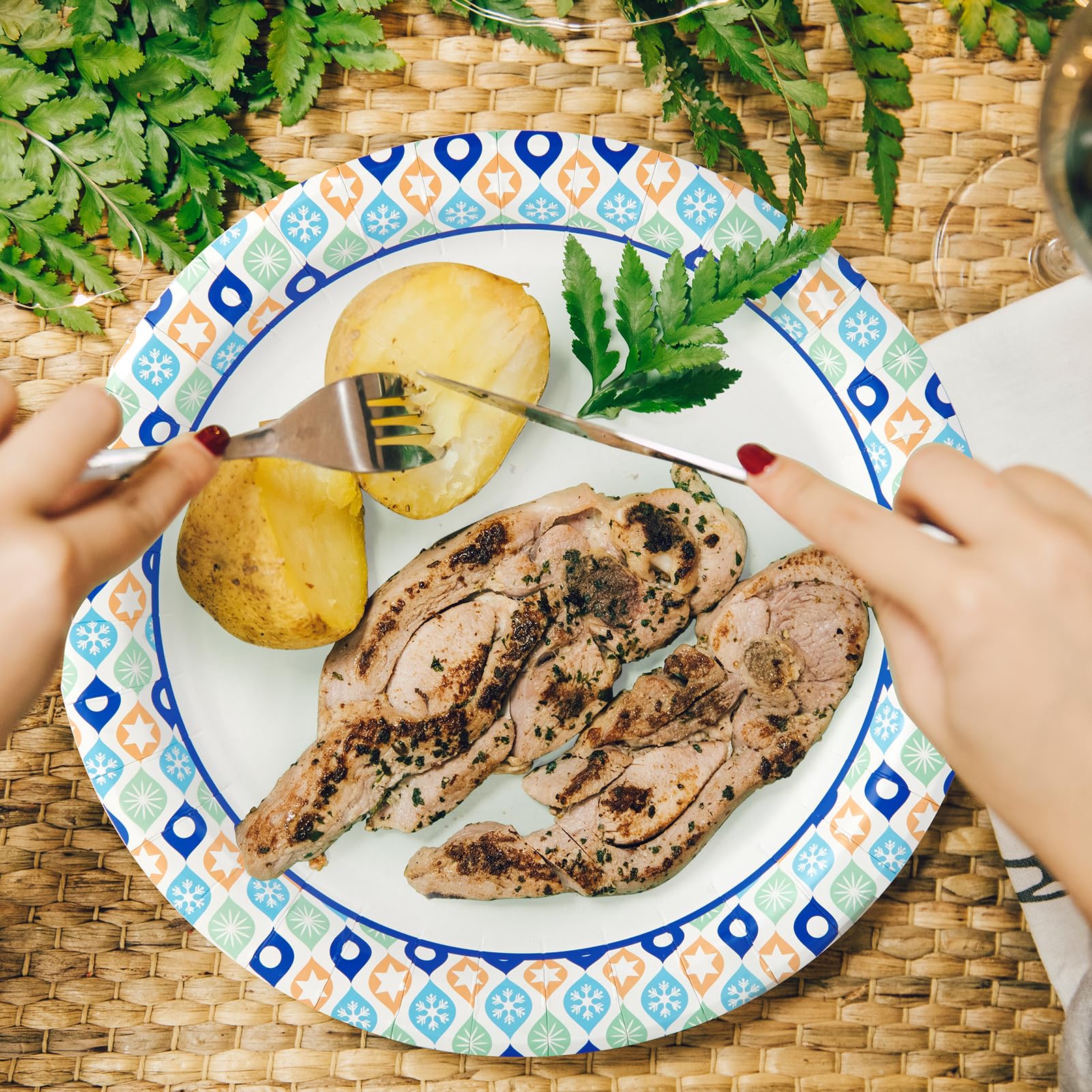 • Design: Large paper plates can be filled with your favorite food. from breakfast to dinner, or snacks, desserts, hamburgers, fruit, and pasta dishes