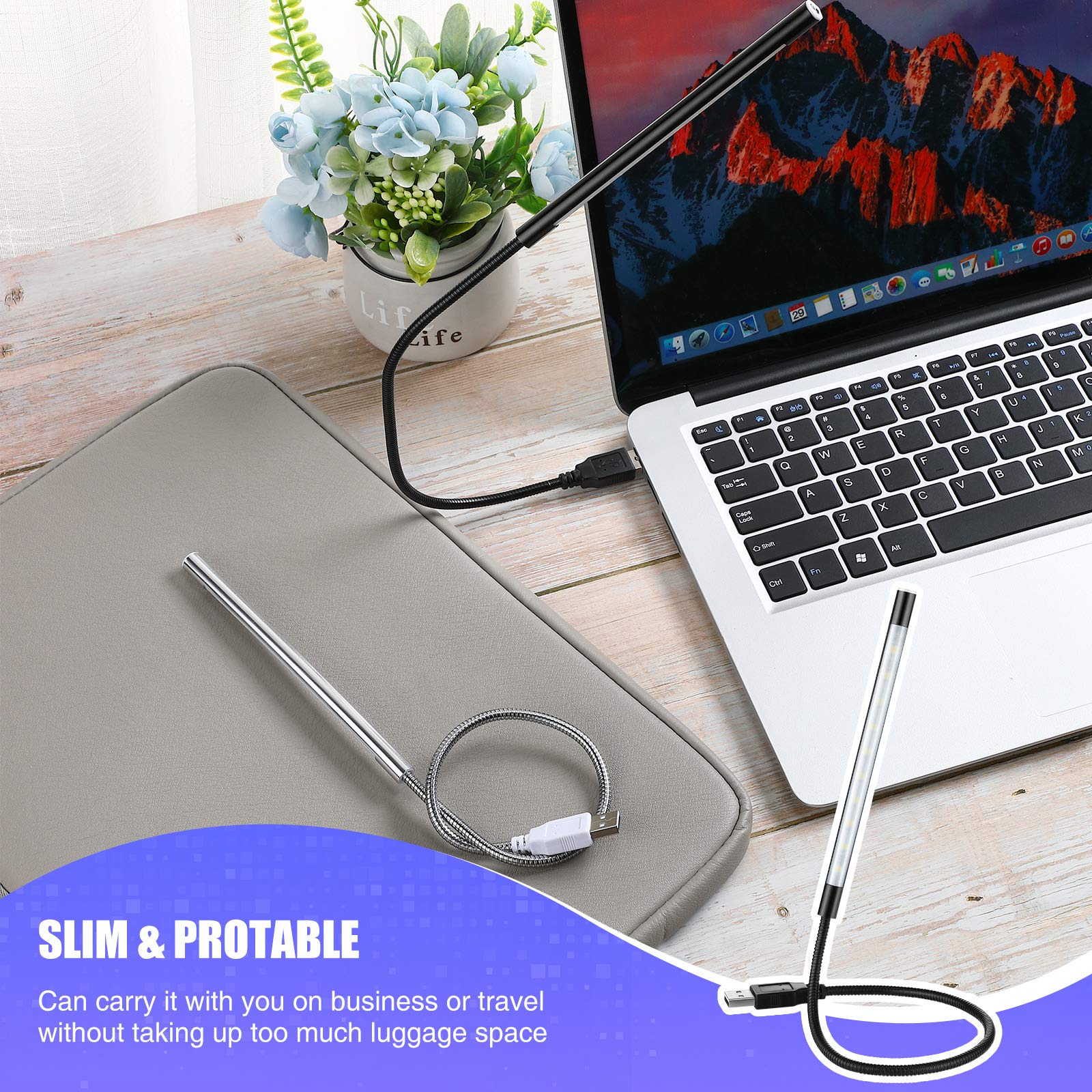 Mudder 2 Pieces USB LED Light for Laptop Keyboard Light Gooseneck Computer Lamp Flexible Stick Dimmable LED Lamp Touch Switch for Reading Book(Black, Silver)