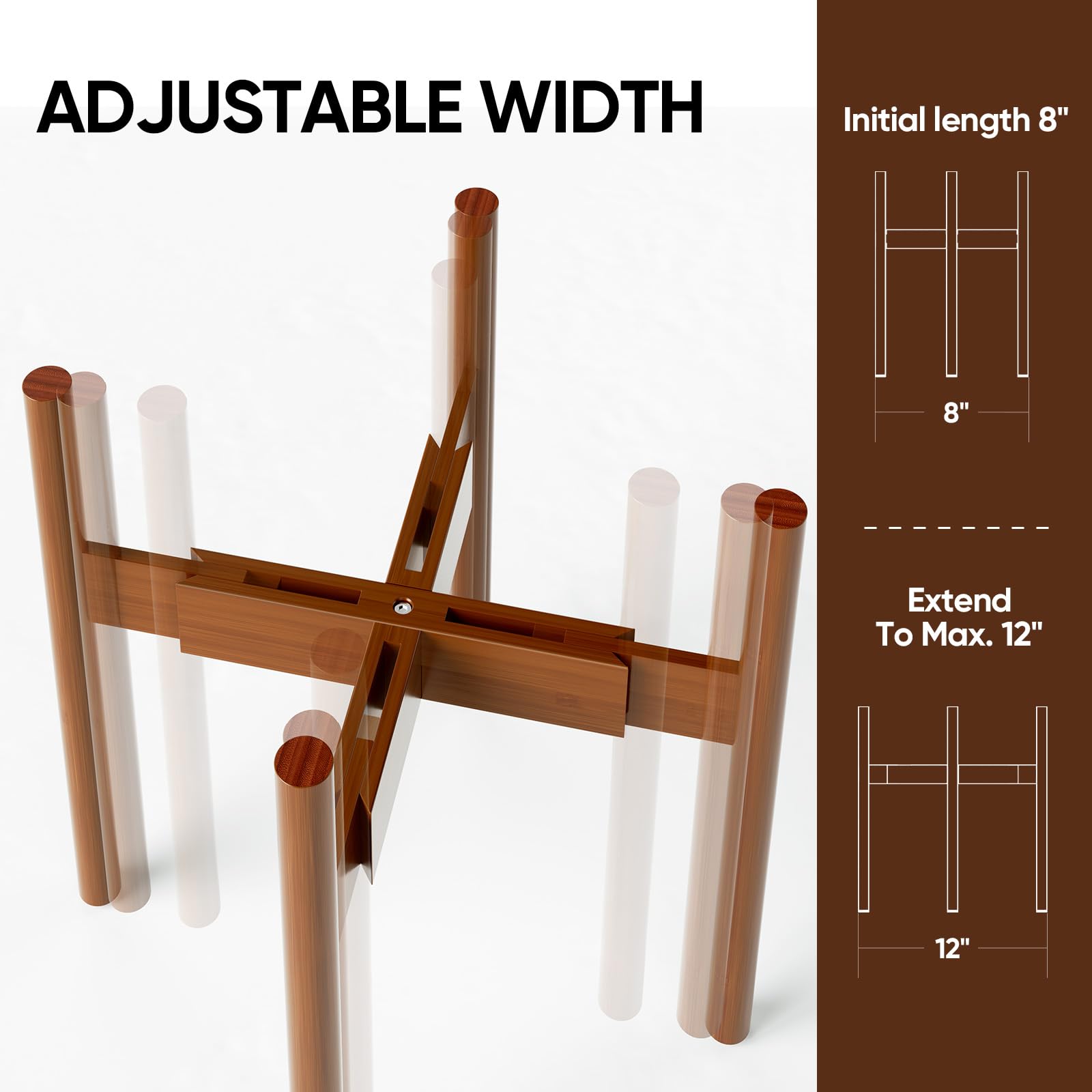 • 【Adjustable Width】Our indoor bamboo plant stand is adjustable from 8 to 12 inches in width; It fits pots in size of 8 9 10 11 12 inches; allowing you to place plant pots of different sizes; Pot and plant are not included