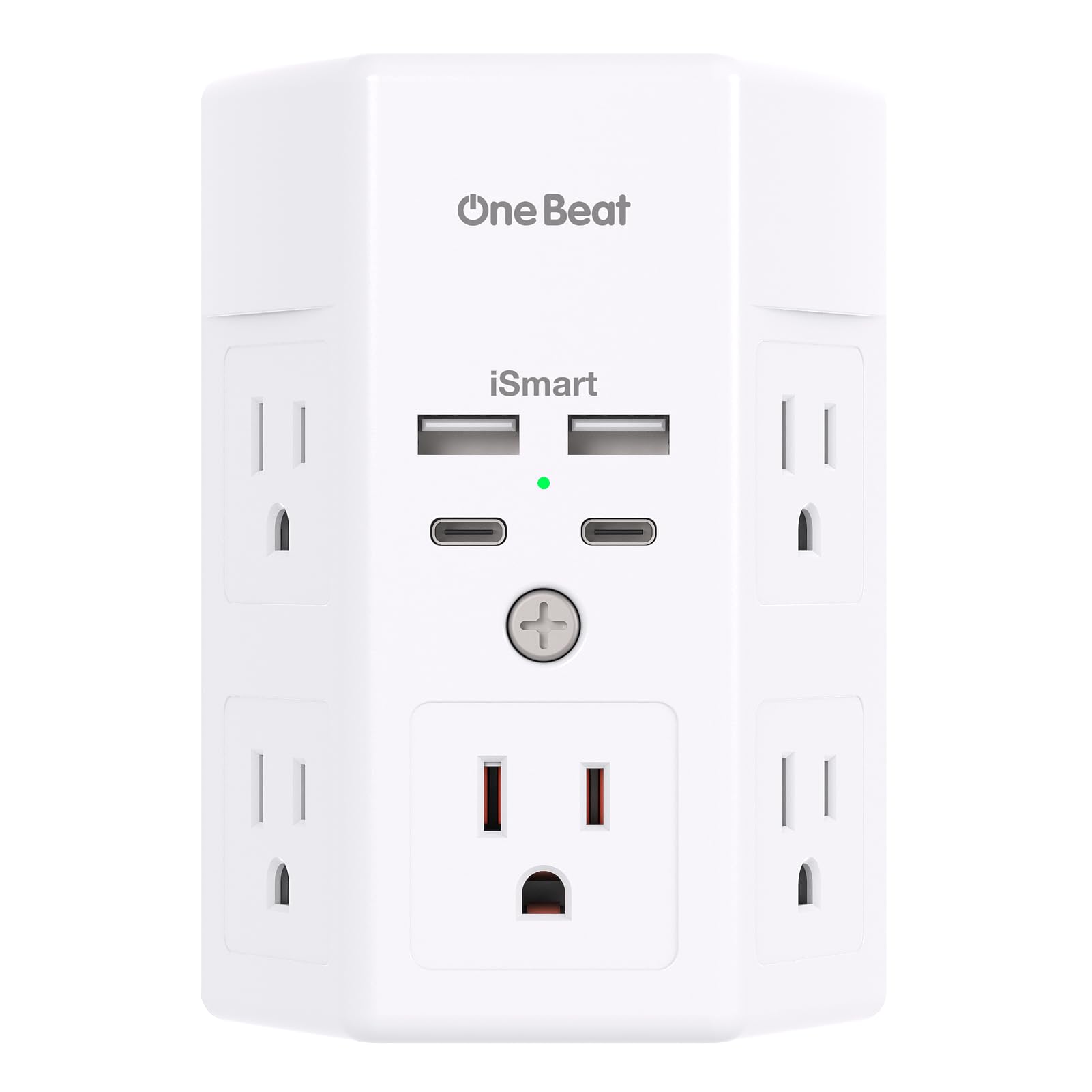 • 【9-in-1 Multi Plug Outlet with Widely Space】 Unique 3 Side Design Power Strip with 5 AC outlets (1875W) and 4 USB ports(3.1A Total); One Beat outlet splitter with 2.1 inches long space in between, can charge 5 big plug at the same time without blocking. With built-in 1800 Joules surge protector that meets most of your needs in life, allowing multiple devices to be charged simultaneously.