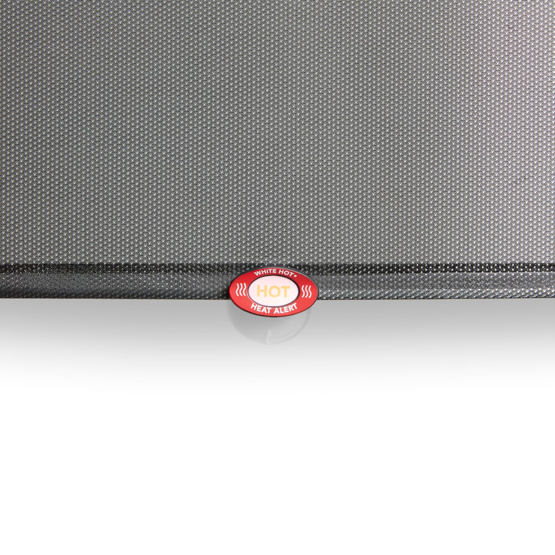 Details: An easy to use, retractable car shade that blocks the sun and features a White Hot patented heat alert system that turns white when car is too hot.