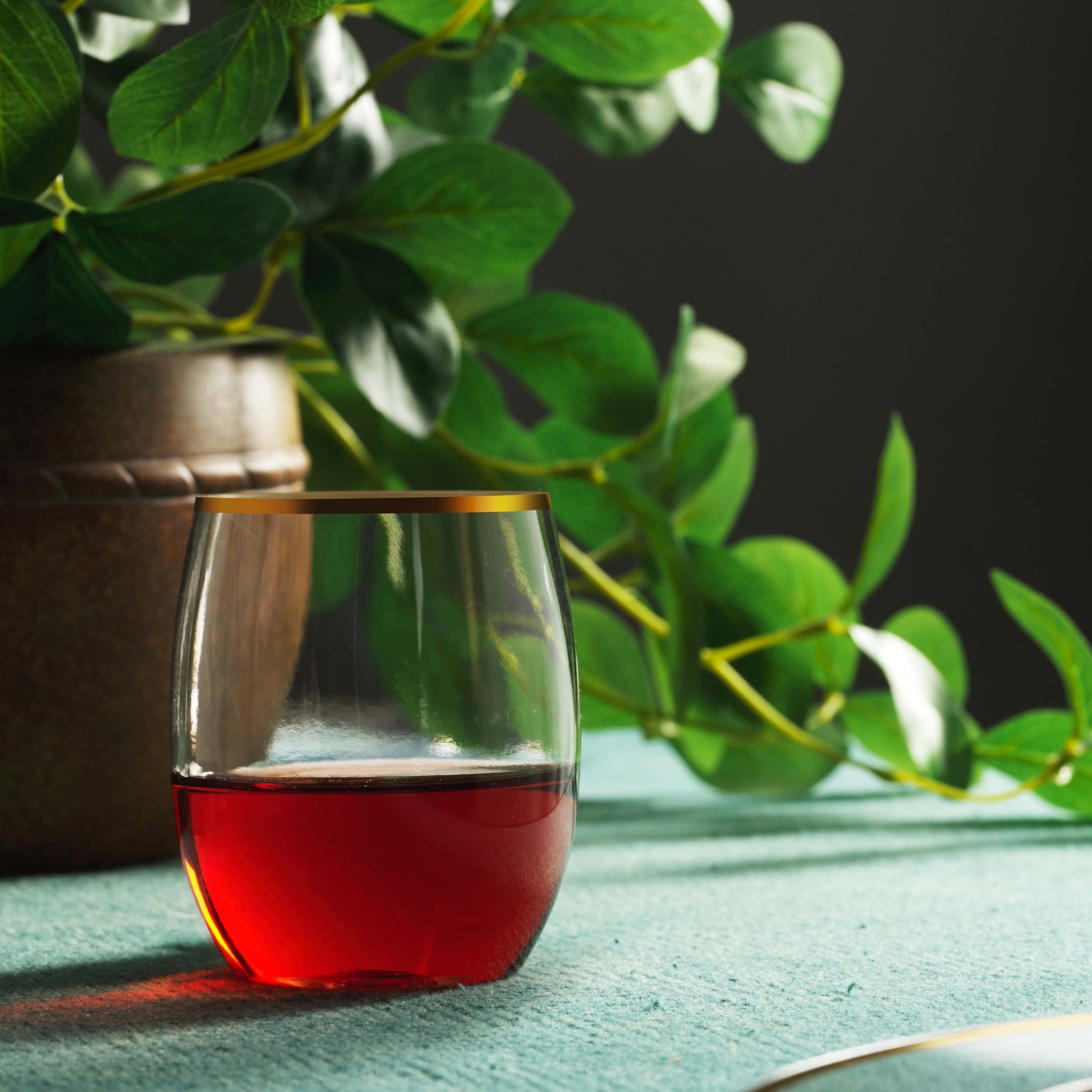 • Add elegant to your party with the MUNFIX gold rimmed plastic stemless wine glasses tumblers