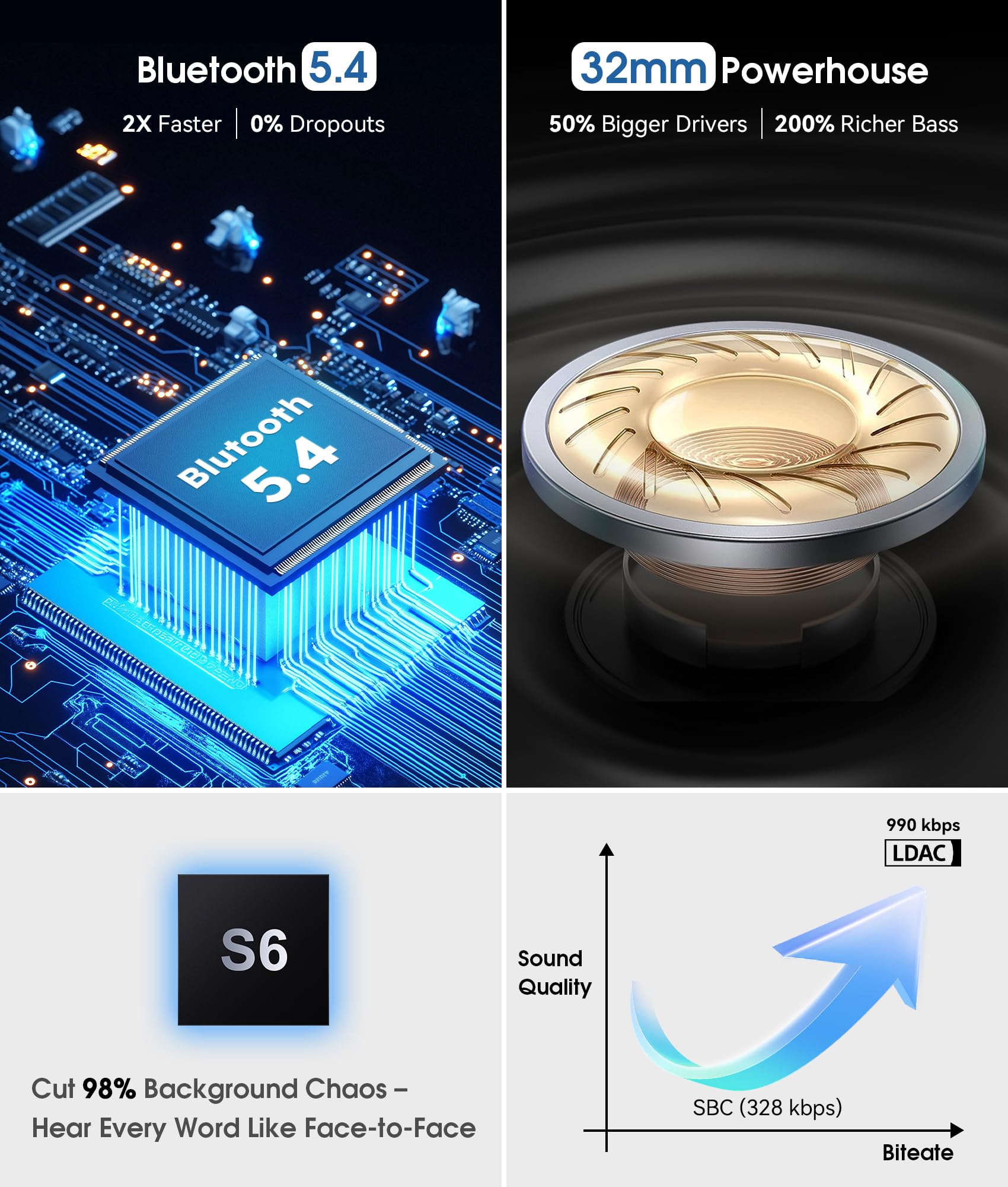• HD STEREO SOUND WITH BLUETOOTH 5.4: Equipped with the latest Bluetooth 5.4 technology for a stable and fast connection; the 40 mm composite drivers deliver deep bass and clear highs, ensuring an immersive audio experience whether you’re on the go or at rest
