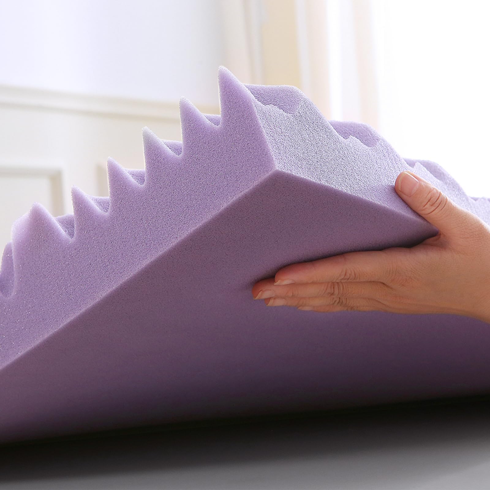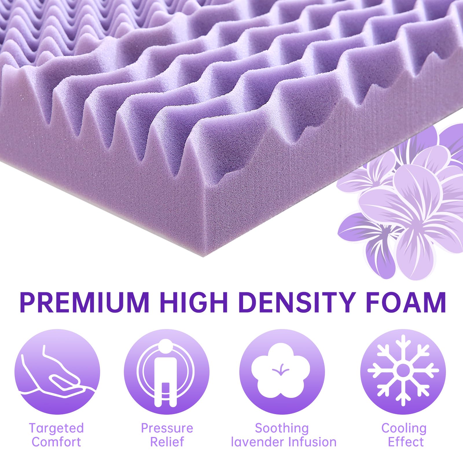 MUXHOMO 3 Inch Full Size Mattress Topper, 7-Zone Cooling Gel Infused Mattress Topper, Egg Crate Foam Bed Pad, CertiPUR-US and Oeko-TEX Certification (54"×75", Lavender)