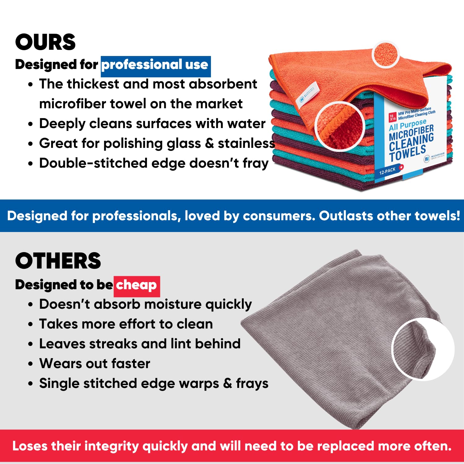 MW Pro Microfiber Cleaning Cloth | Black Gray Blue | 12 Pack | 16” x 16” | All Purpose Microfiber Towels - Clean, Dust, Polish, Scrub, Absorbent