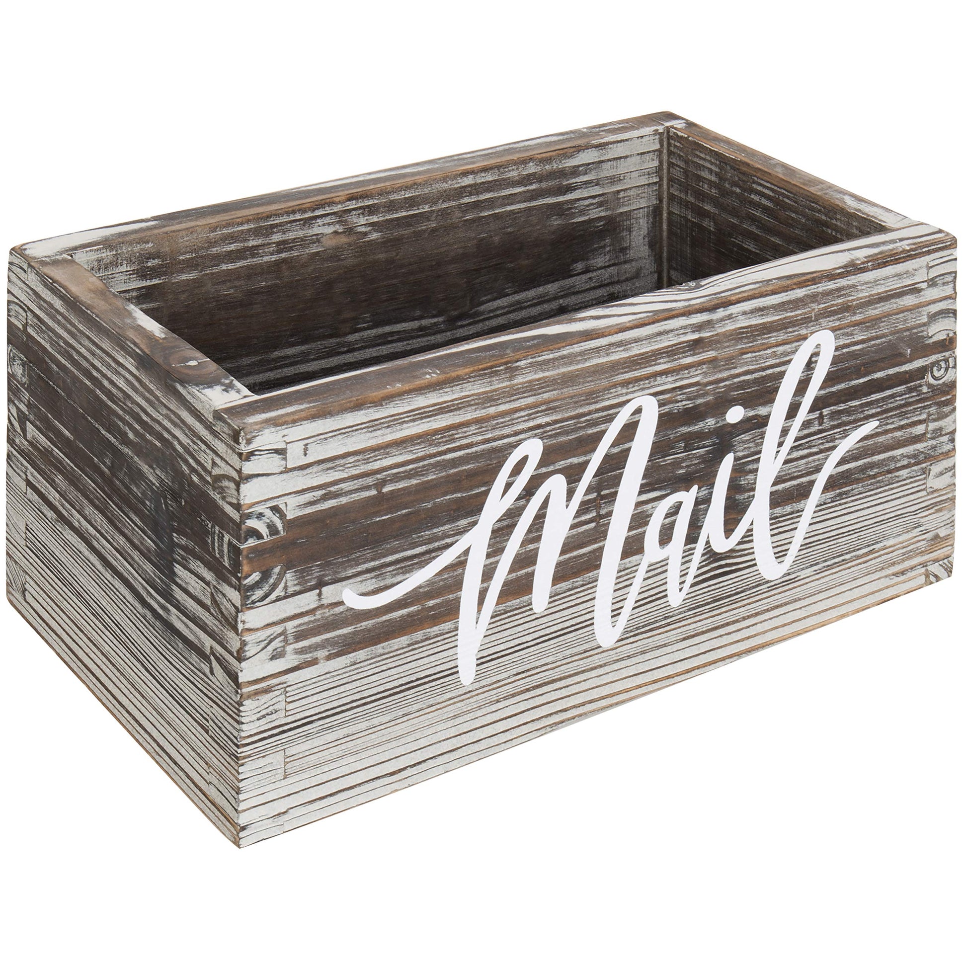 MyGift Mail Holder Storage Organizer Box Torched Wood with MAIL Script Design, Desktop Letters, Bills, Notes and Postcard Bin for Home Office Dorm Room