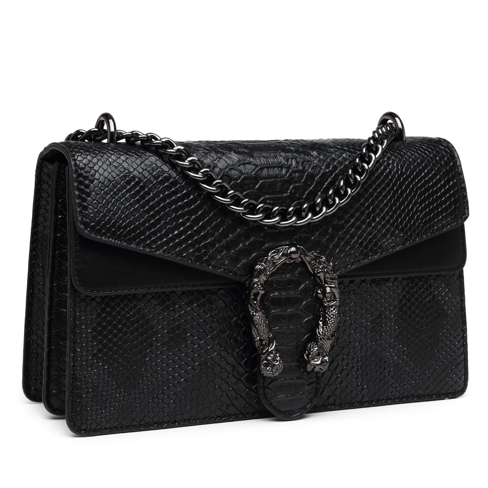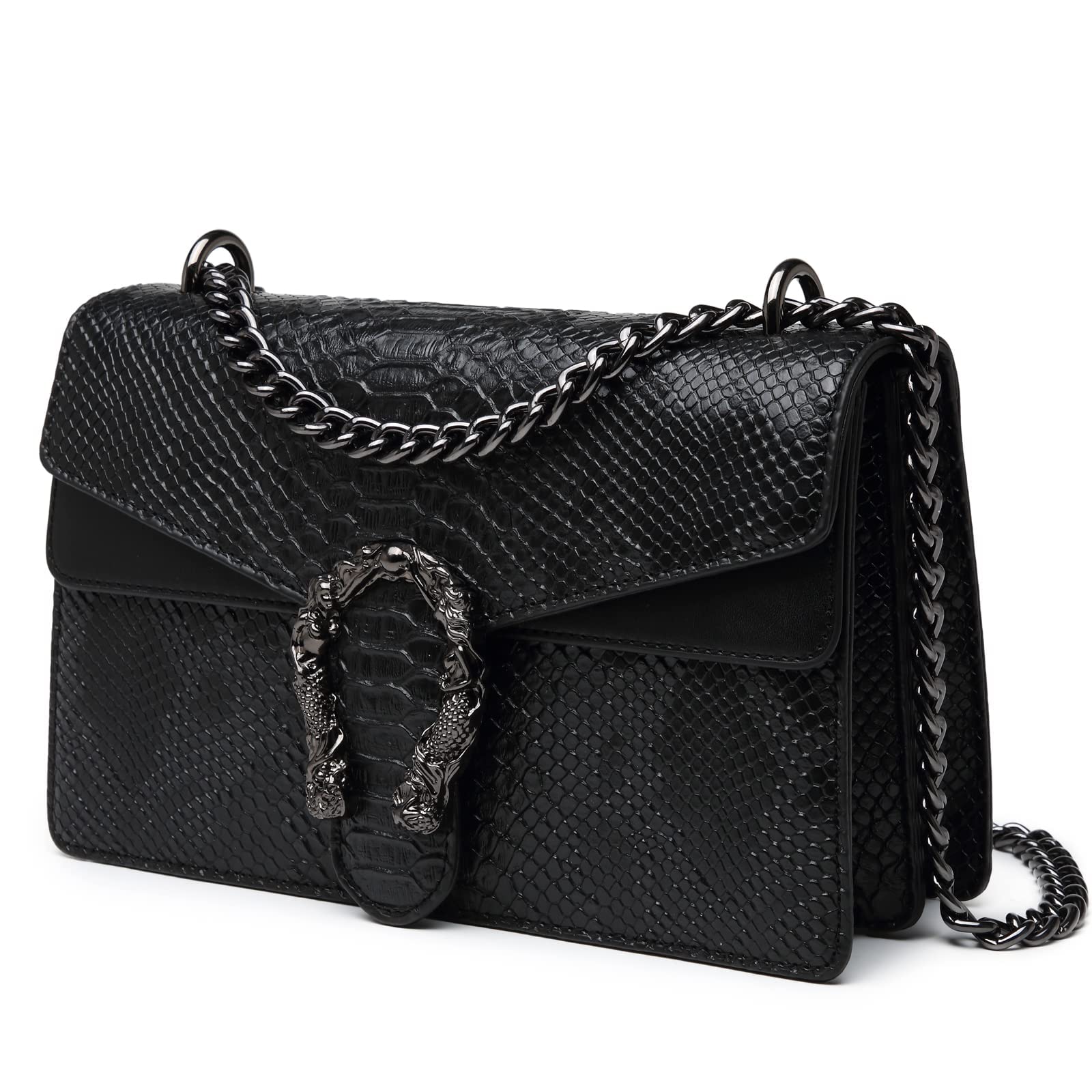 MYHOZEE Crossbody Bags for Women - Snake Printed Clutch Purses Leather Shoulder Bags Chain Strap Evening Handbags Black