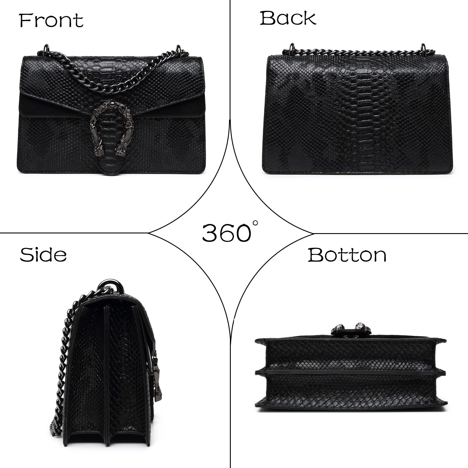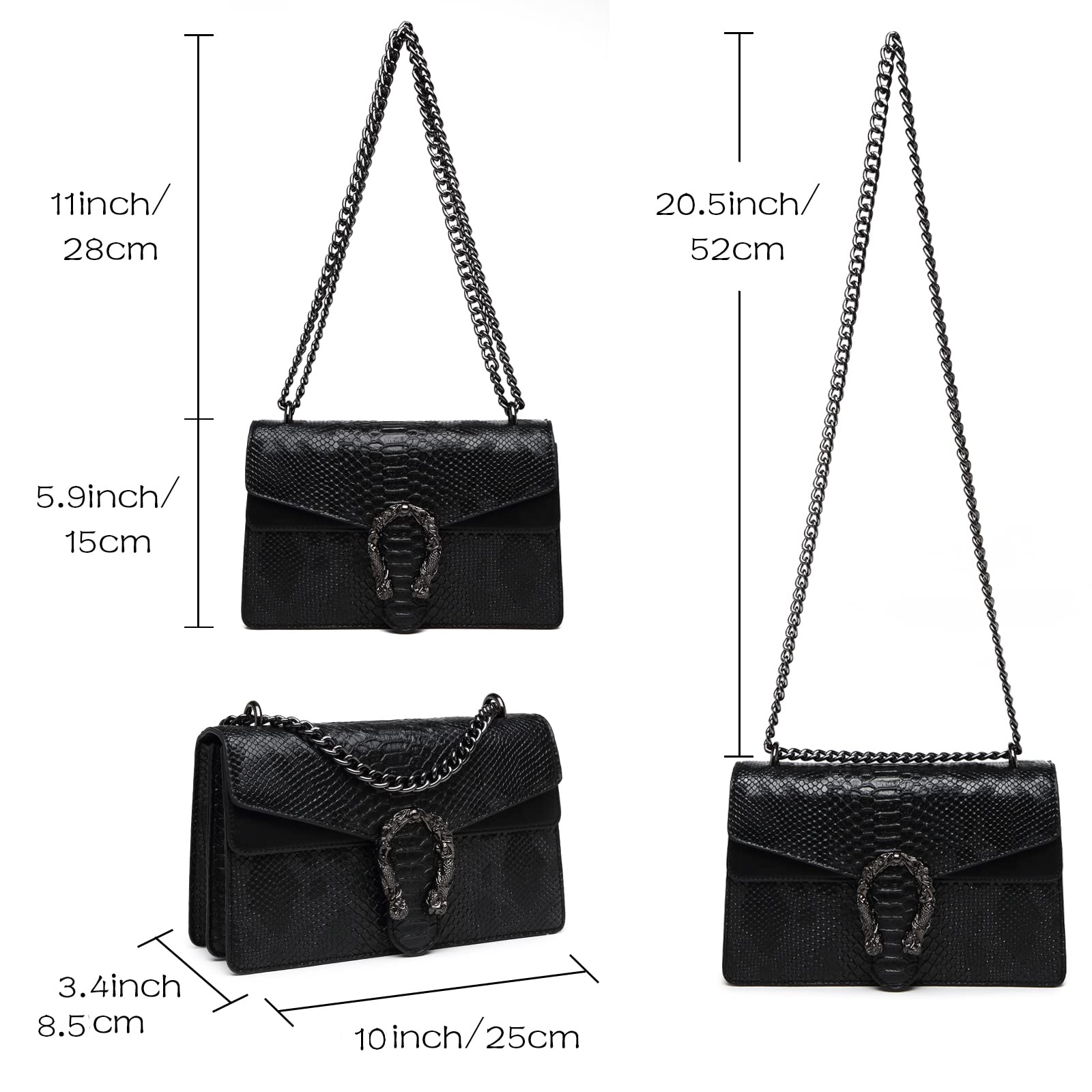 • Structure: The crossbody bag has 2 large main pockets, 1 zip pocket, and 1 open card pocket. Classified storage, concise and clear! The flap of the women's purses is decorated with a metal snake pattern, which is unique.