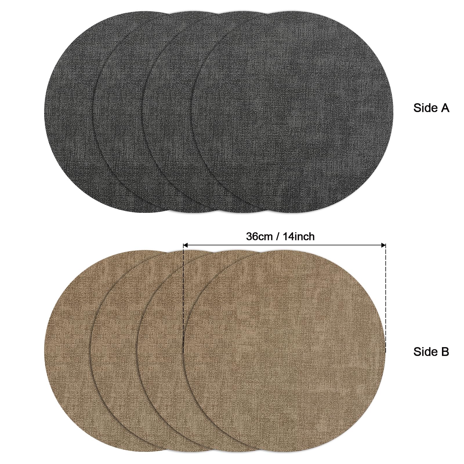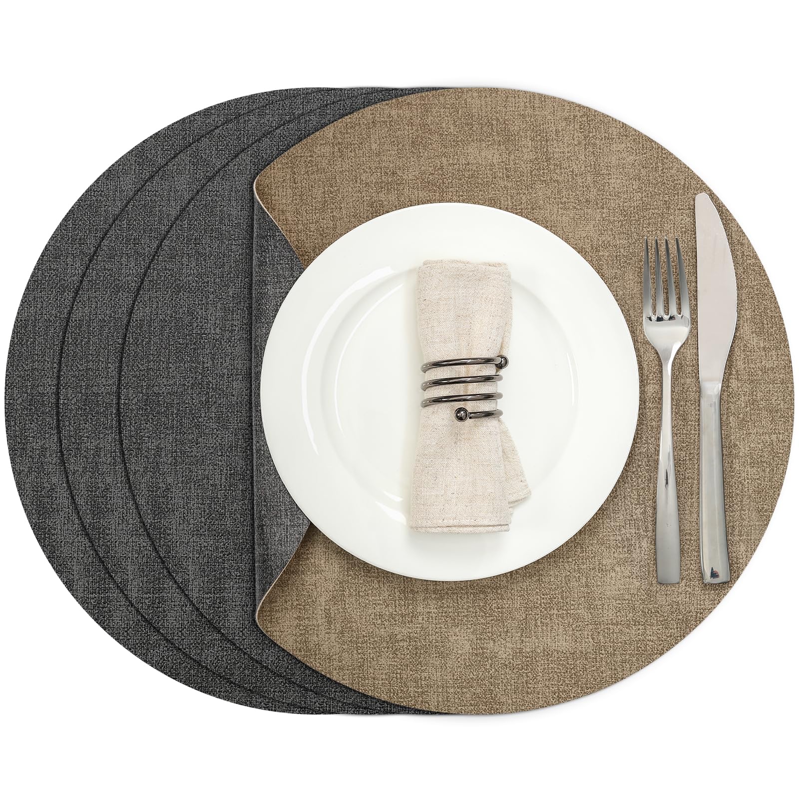 Myir JUN Round Dual-Sided Placemats, Faux Leather Set of 4 for Indoor and Outdoor Dining Tables, Non-Slip Washable Table Mats (Gray Beige)