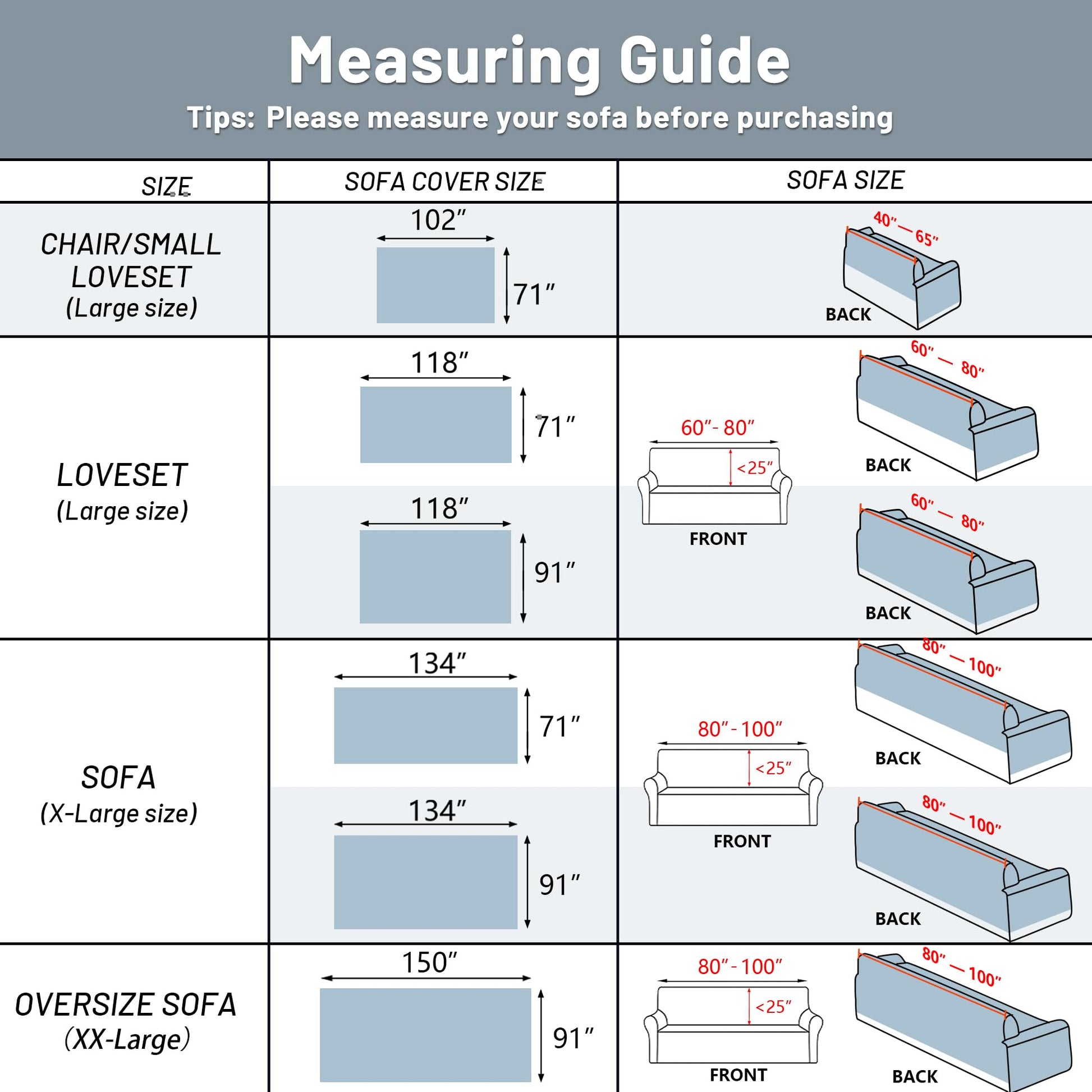 • Product Size: We offer a variety of sizes for you to choose from,Medium Size (71'x102') for loveseat sofa futon chair,Large Size (71'x118', 91'x118') for 2-3 seats,X-Large Size (71'x134', 91'x134') for 3 seats, XX-Large Size (91'x150') for 4 seats, choose the right size according to the actual sofa size. You can choose 71' or 91' according to your needs to achieve different coverage effects!