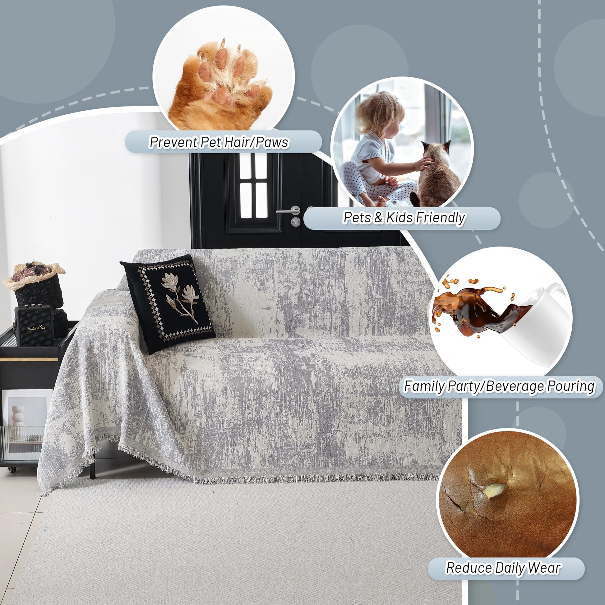 • High Quality: Couch throw cover furniture protector is made of thick chenille fabric, super soft and skin-friendly to the touch, tear-resistant, good drape, breathable, comfortable and durable. Suitable for all seasons and will not pilling or fading after washing.