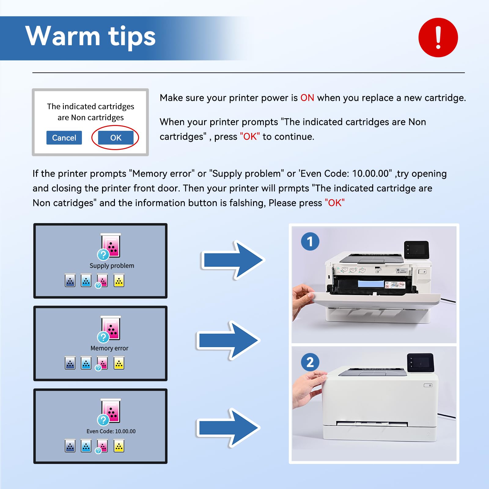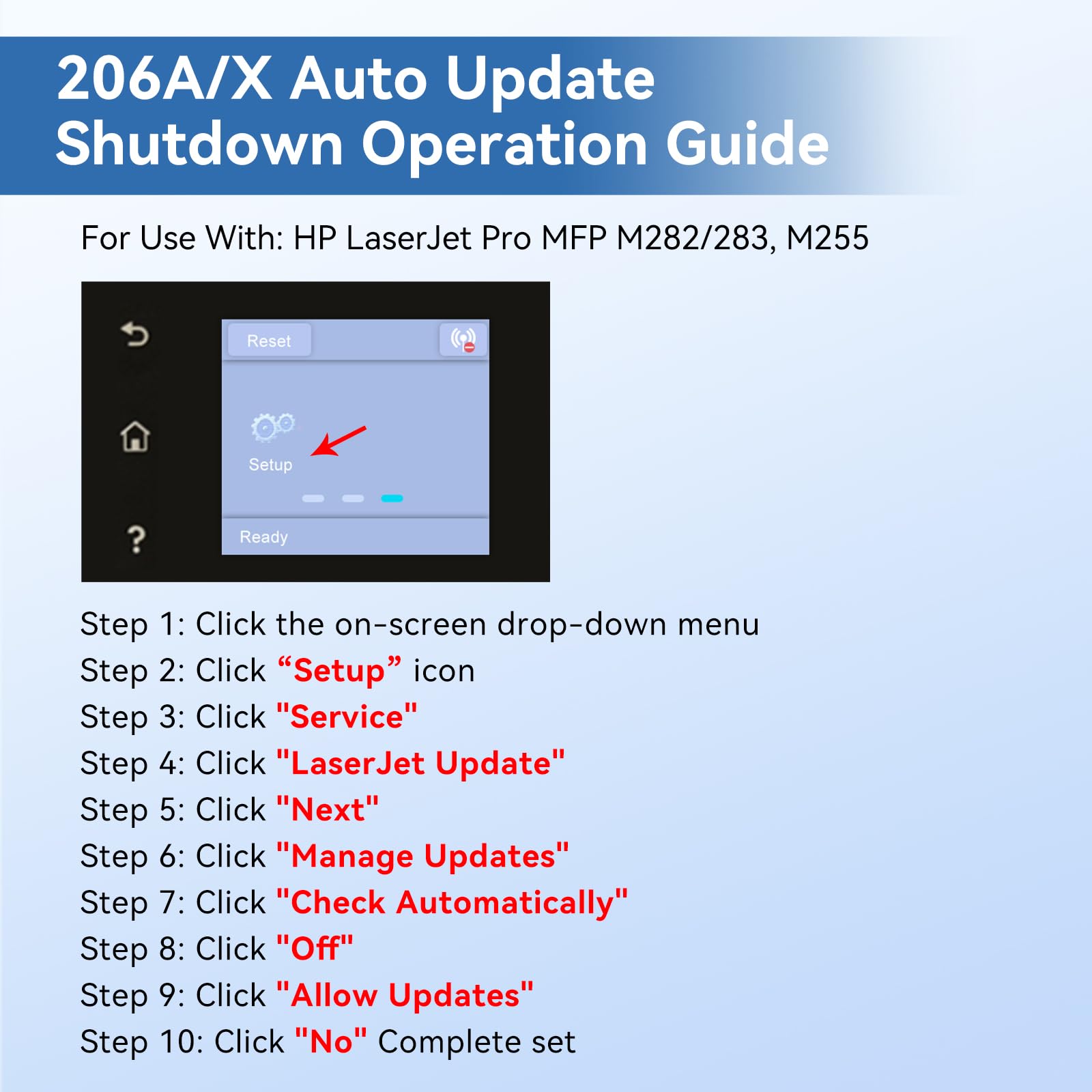 • Easy Installation: 206X W2110X Black Toner Cartridges come with chips, which are designed for easy installation and better replacement compatible with M255, MFP M282 and MFP M283 series printers, eliminating the need to transfer chips from old cartridges