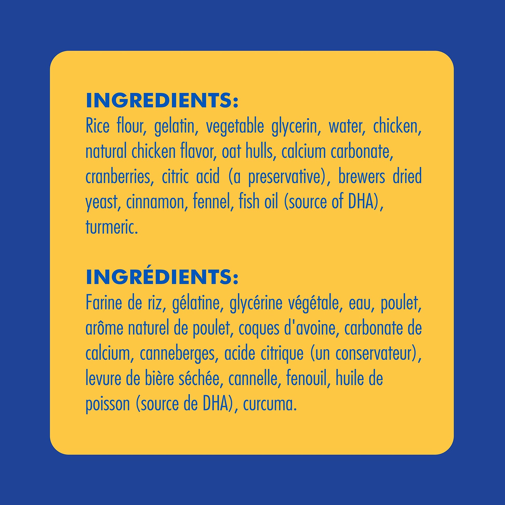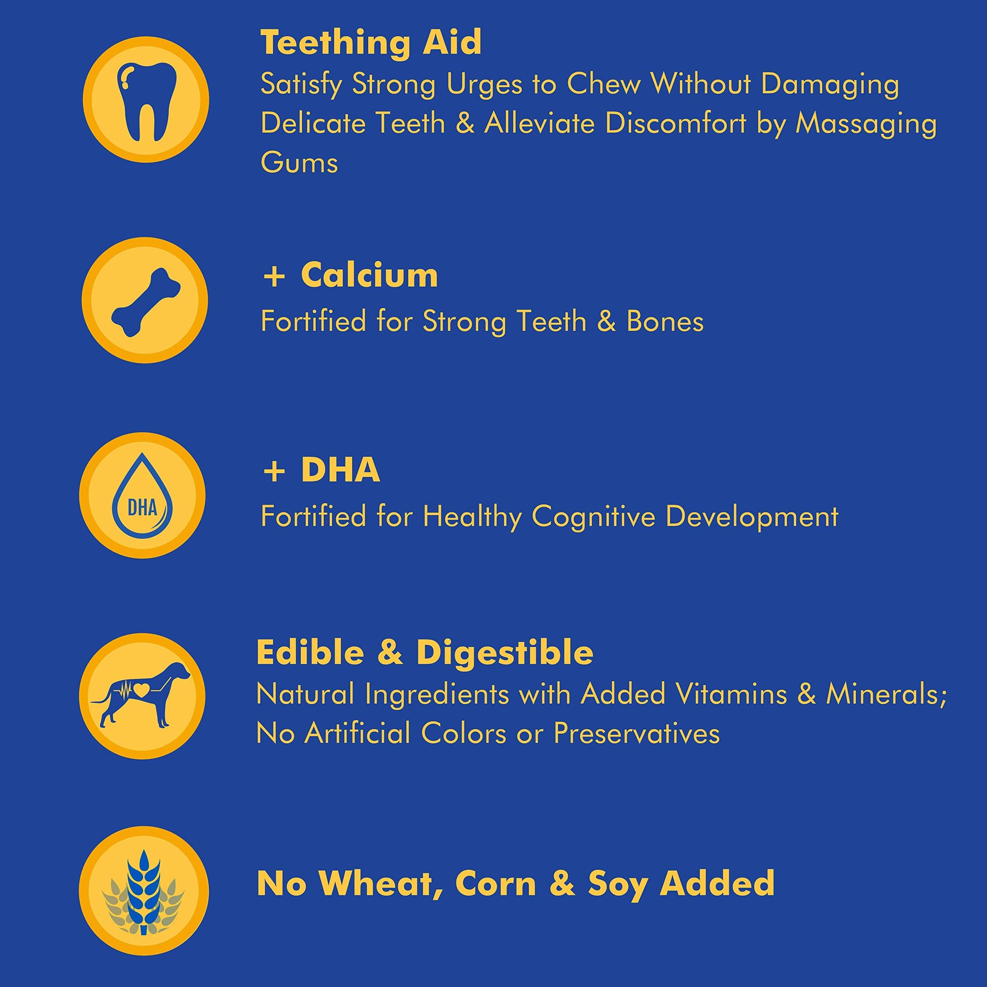 Details: Growing new teeth is tough work! Sore gums and a strong urge to chew while cutting new teeth can turn your precious puppy into a whirlwind of destruction. N-Bone Puppy Teething Rings are easy for floppy puppy paws to hold onto and provide a soothing and appropriate outlet for chewing. Formulated with DHA and calcium to support your puppy’s unique nutritional needs, our delicious chicken flavored rings are pliable and won’t damage immature teeth.