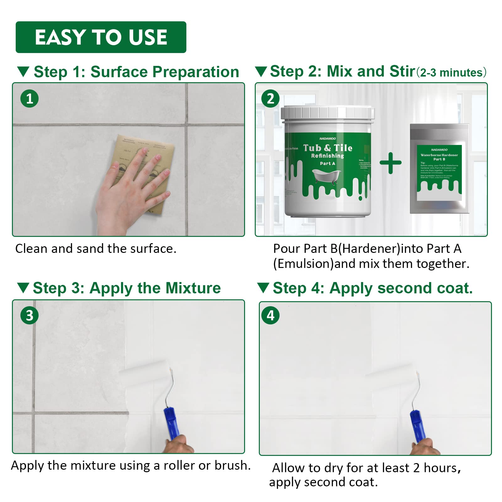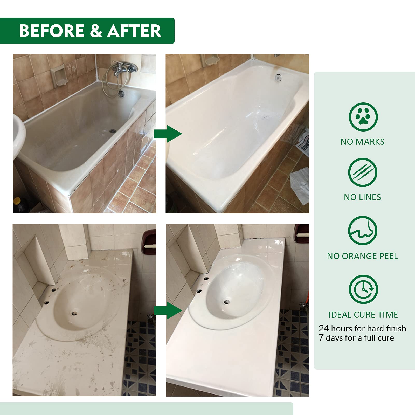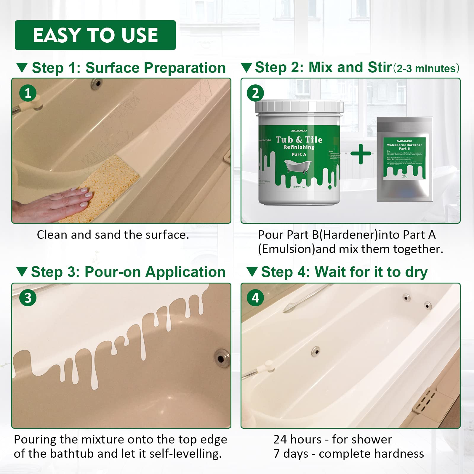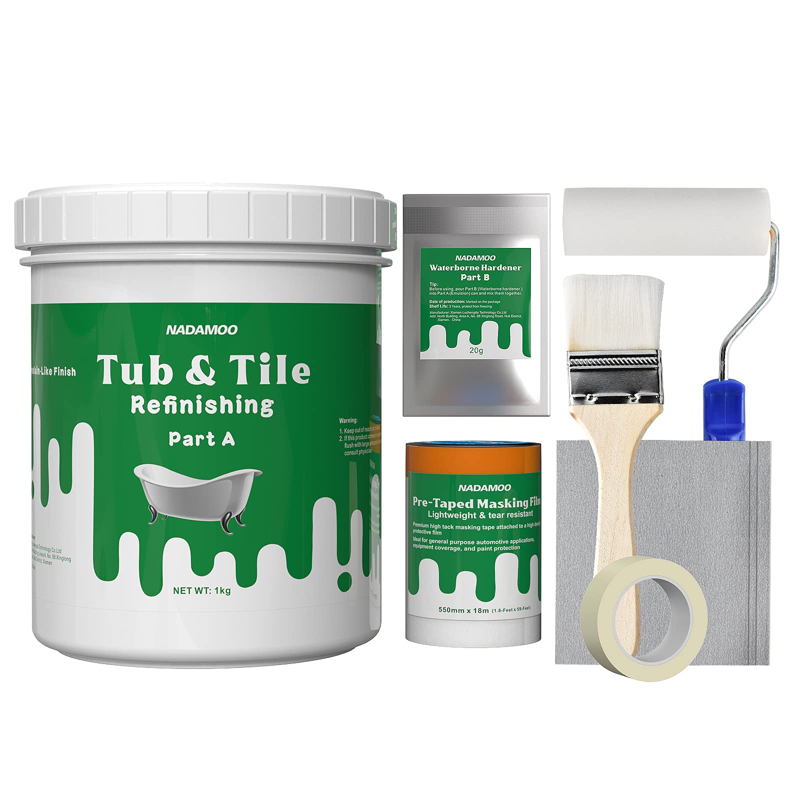 NADAMOO Tub and Tile Refinishing Kit (1kg / 35 oz, with tools), Bathtub Sink Countertop DIY Paint Kit for Bathroom Kitchen Porcelain Fiberglass, Semi-gloss White Coat